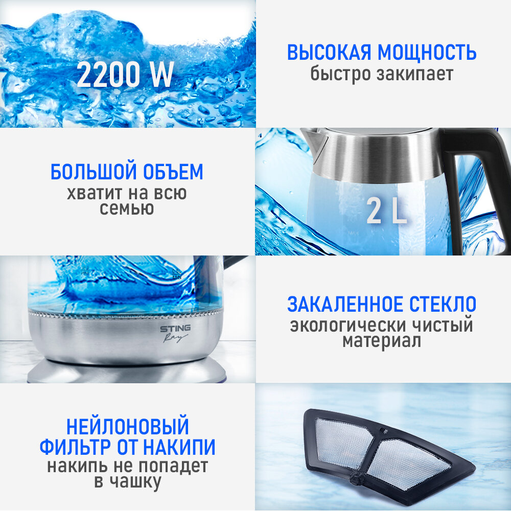 Электрический чайник STINGRAY ST-KT3002A черный жемчуг информация: