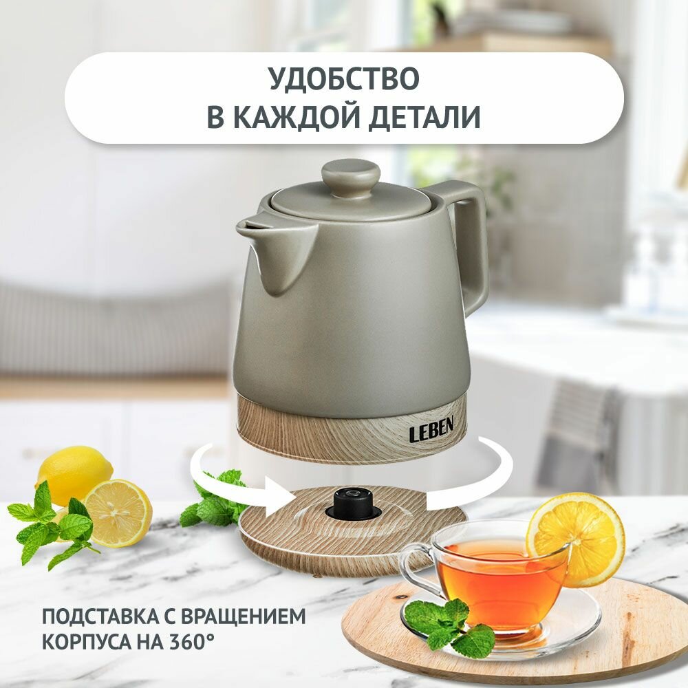 Чайник электрический керамический 1 л LEBEN, бежевый 4 504 ₽