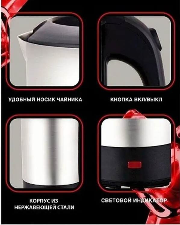 Отзывы на Чайник электрический маленький, мини чайник 0.5 литра, электрочайник металлический из нержавеющей стали, мощность 1000 Вт, световой индикатор