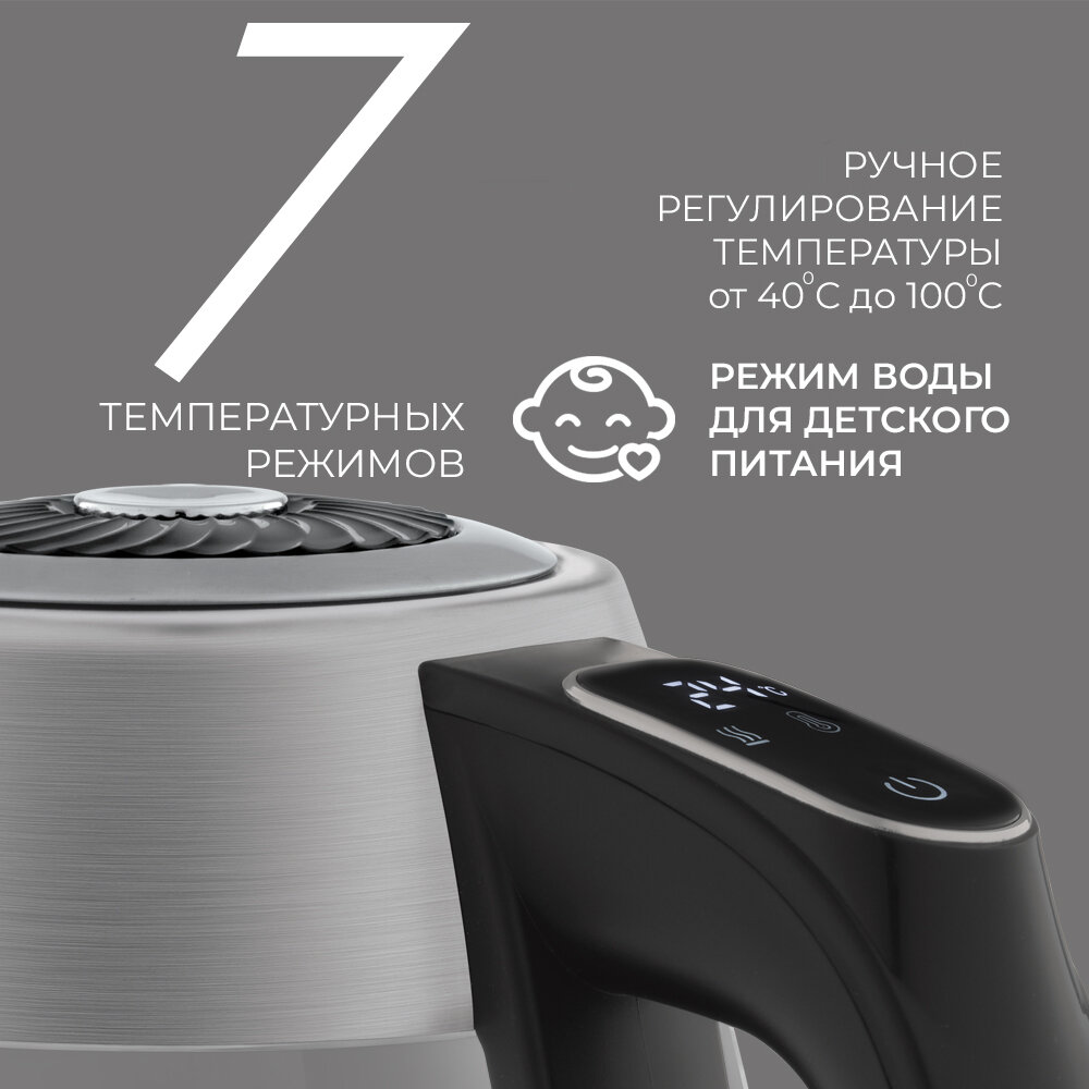 | Особенности | вращение на 360 градусов / индикатор уровня воды / индикация включения / отсек для хранения шнура / сенсорное управление |