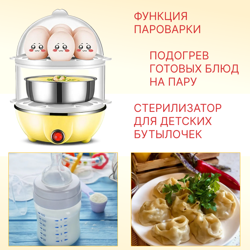 Отзывы на Яйцеварка на 14 яиц, цвет желтый, 2 яруса, питание от сети 220В