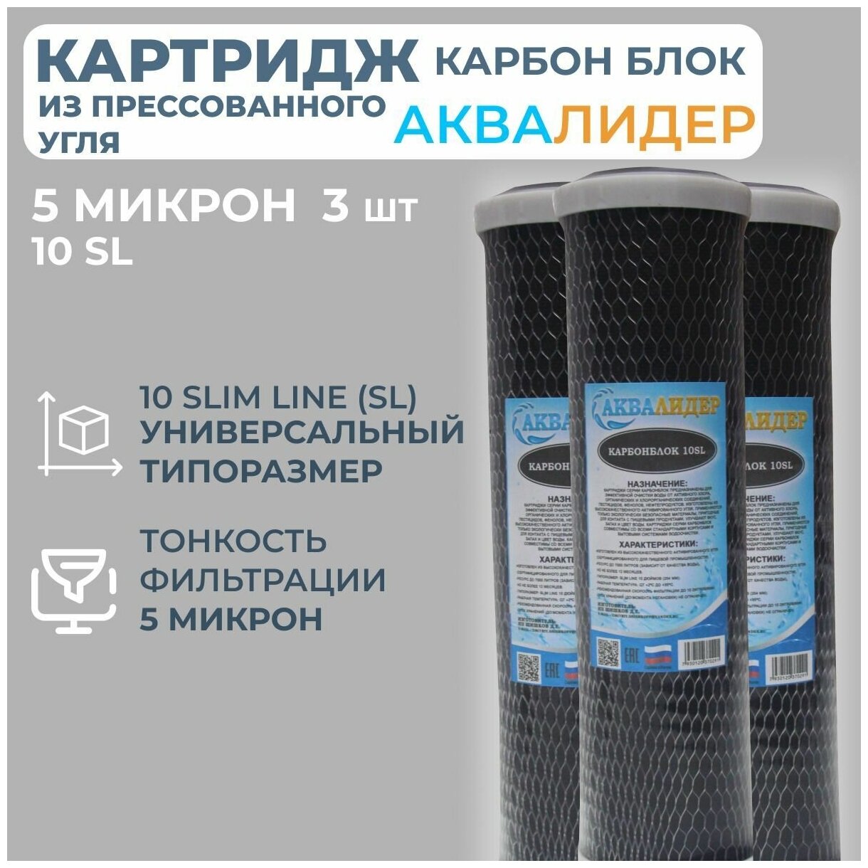 10 цен на Картридж из прессованного угля аквалидер Карбон блок 10SL-5 мкм -3шт.