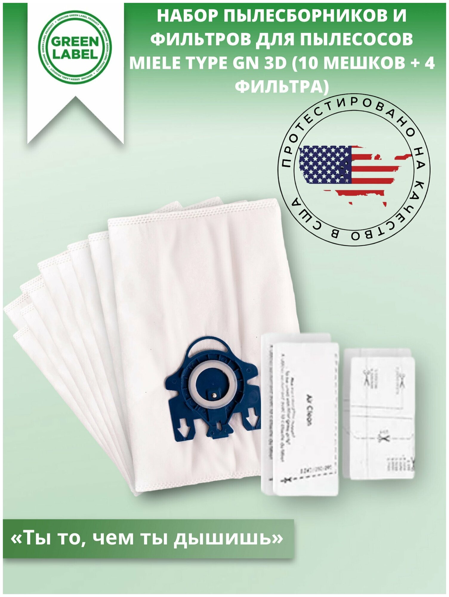 10 цен на Набор пылесборников и фильтров для пылесосов Miele Type GN 3D (10 мешков +4 фильтра) мешки для Miele Complete C3, C2, Classic C1, S8, S5, S2