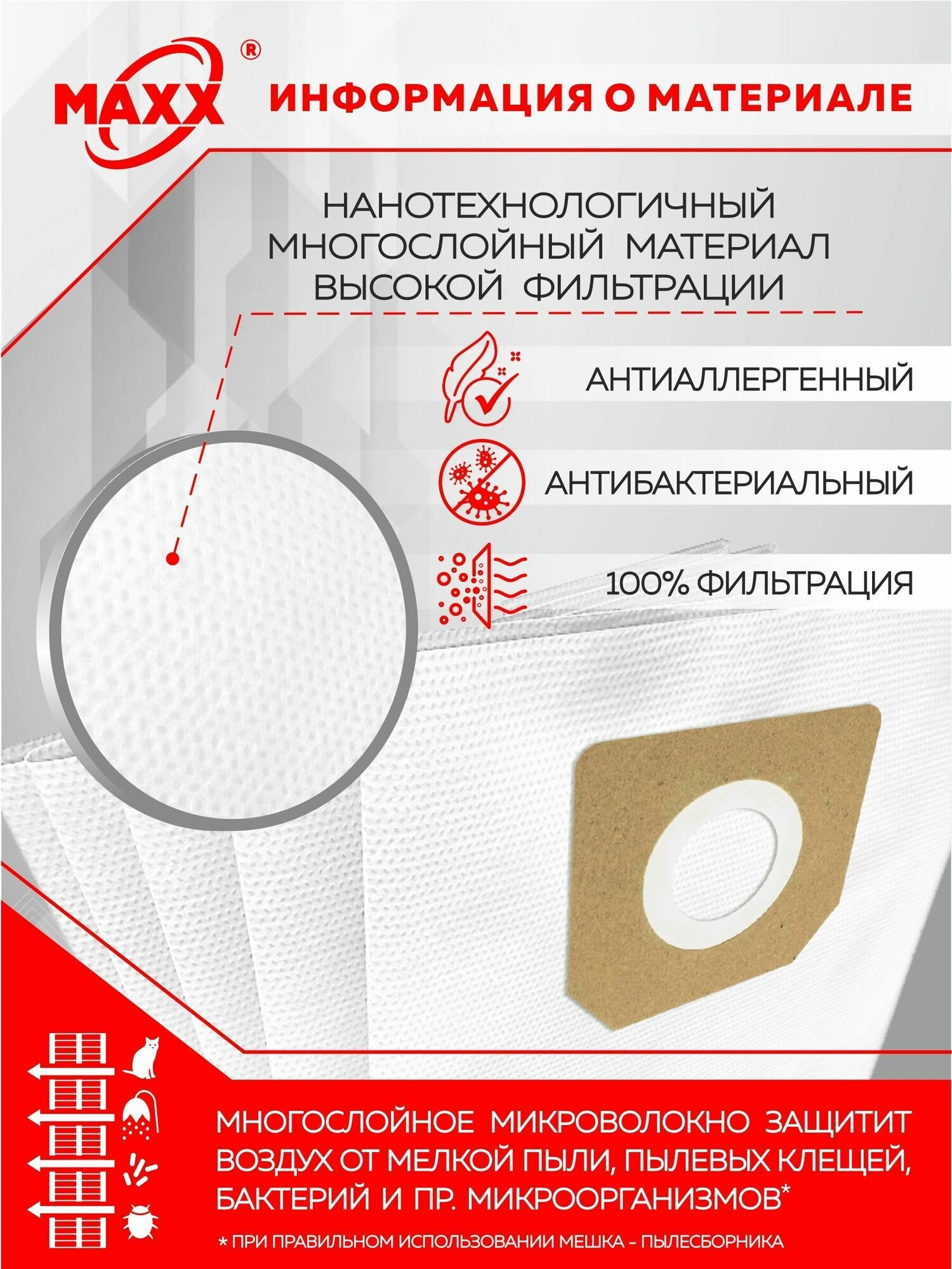 Мешок - пылесборник 5 шт. для пылесоса ЗУБР ПУ-20-1400 М3 / ЗУБР ЗППУ-1400-20