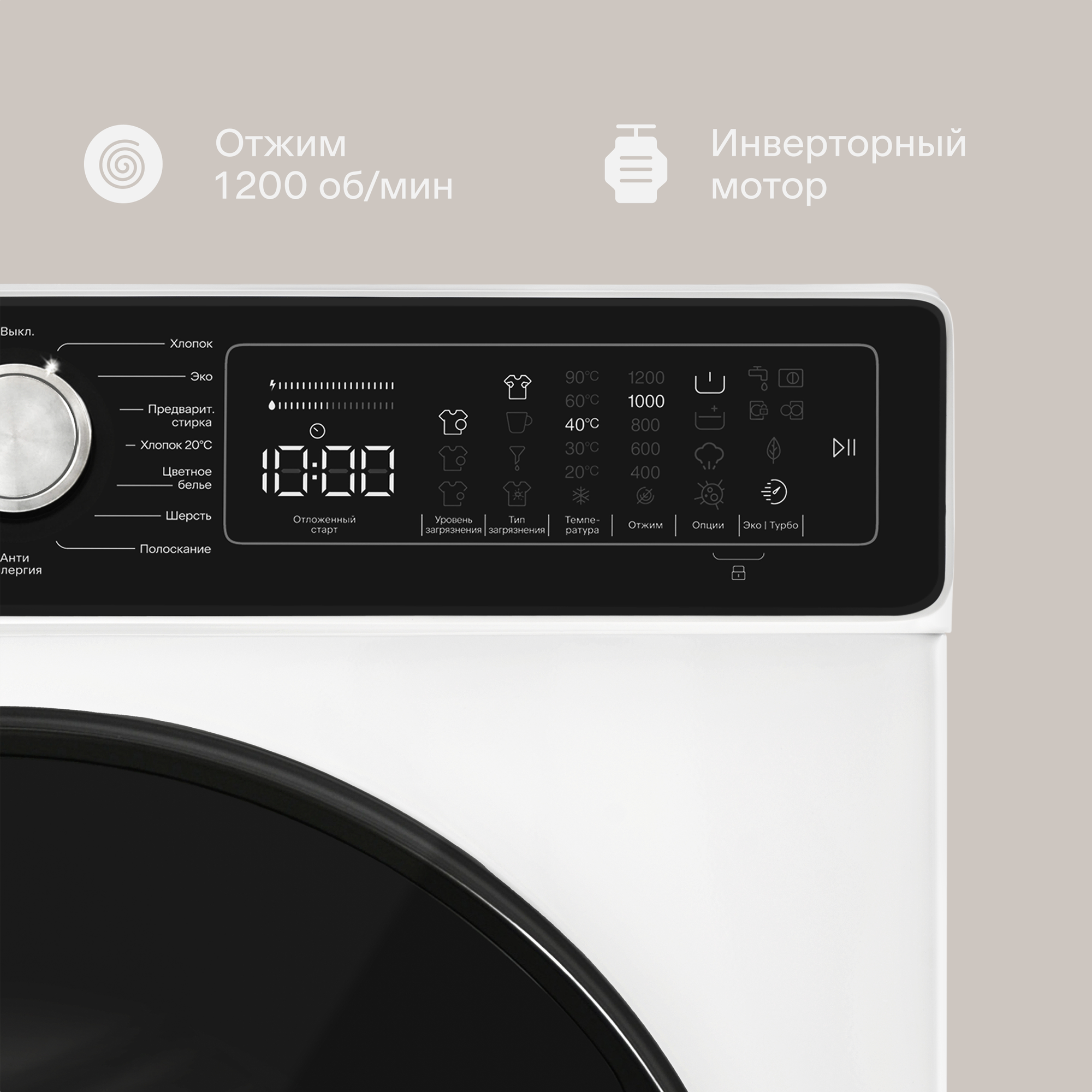 Стиральная машина с инвертором и паром Tuvio WFS66HW21, белая информация: