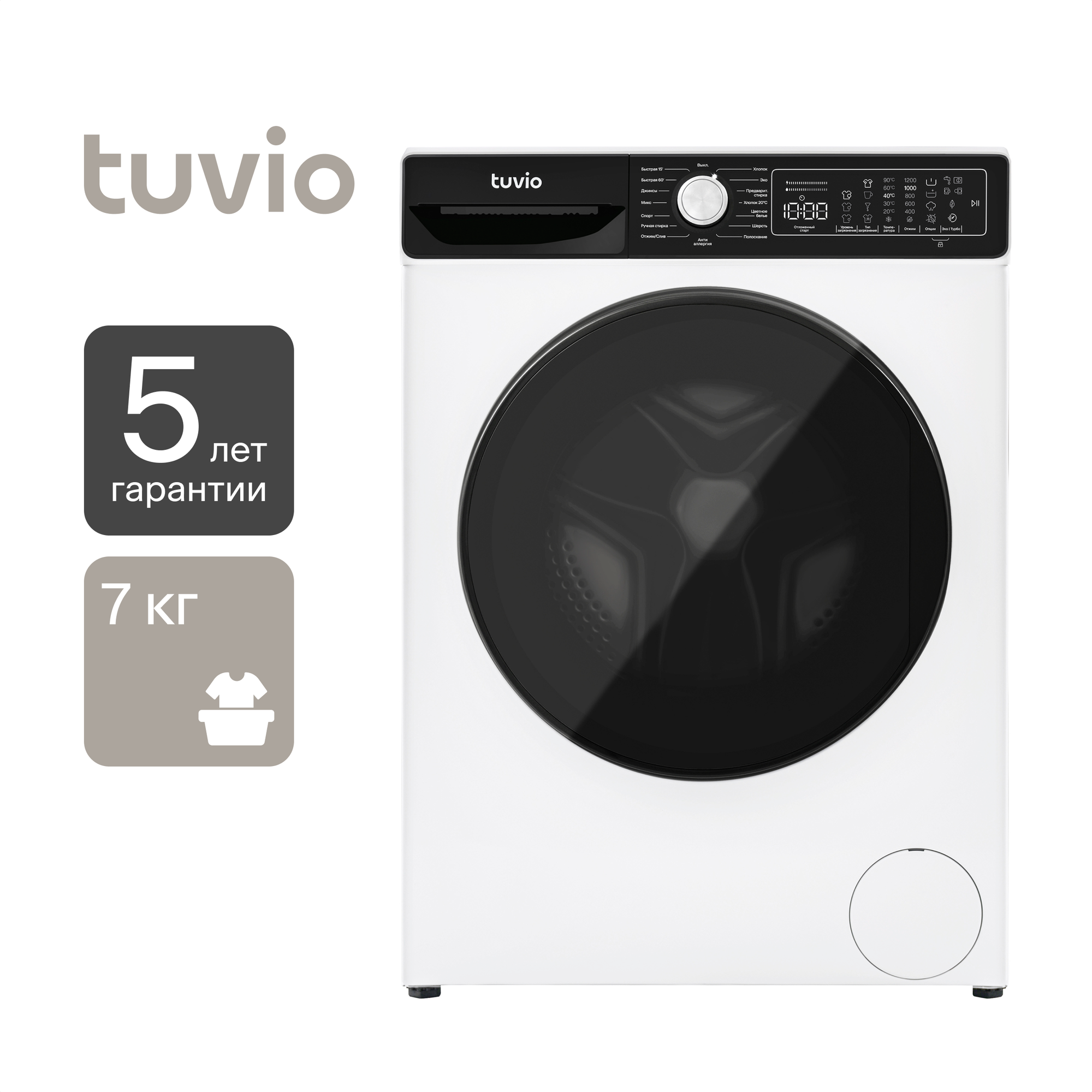 Стиральная машина с инвертором и паром Tuvio WFF76HW21, белая информация: