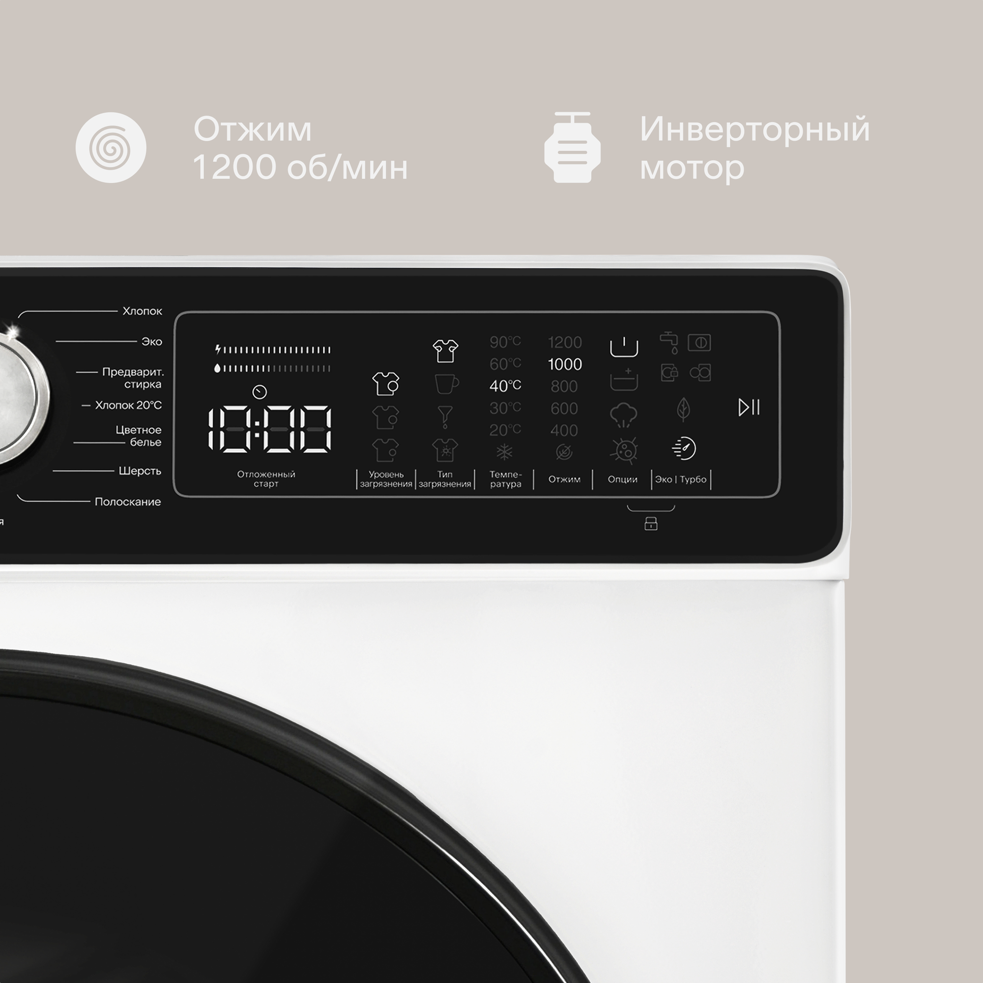 Стильная стиральная машина Beko, инверторный мотор, цифровой дисплей, контроль дисбаланса и пенообразования, 15 программ