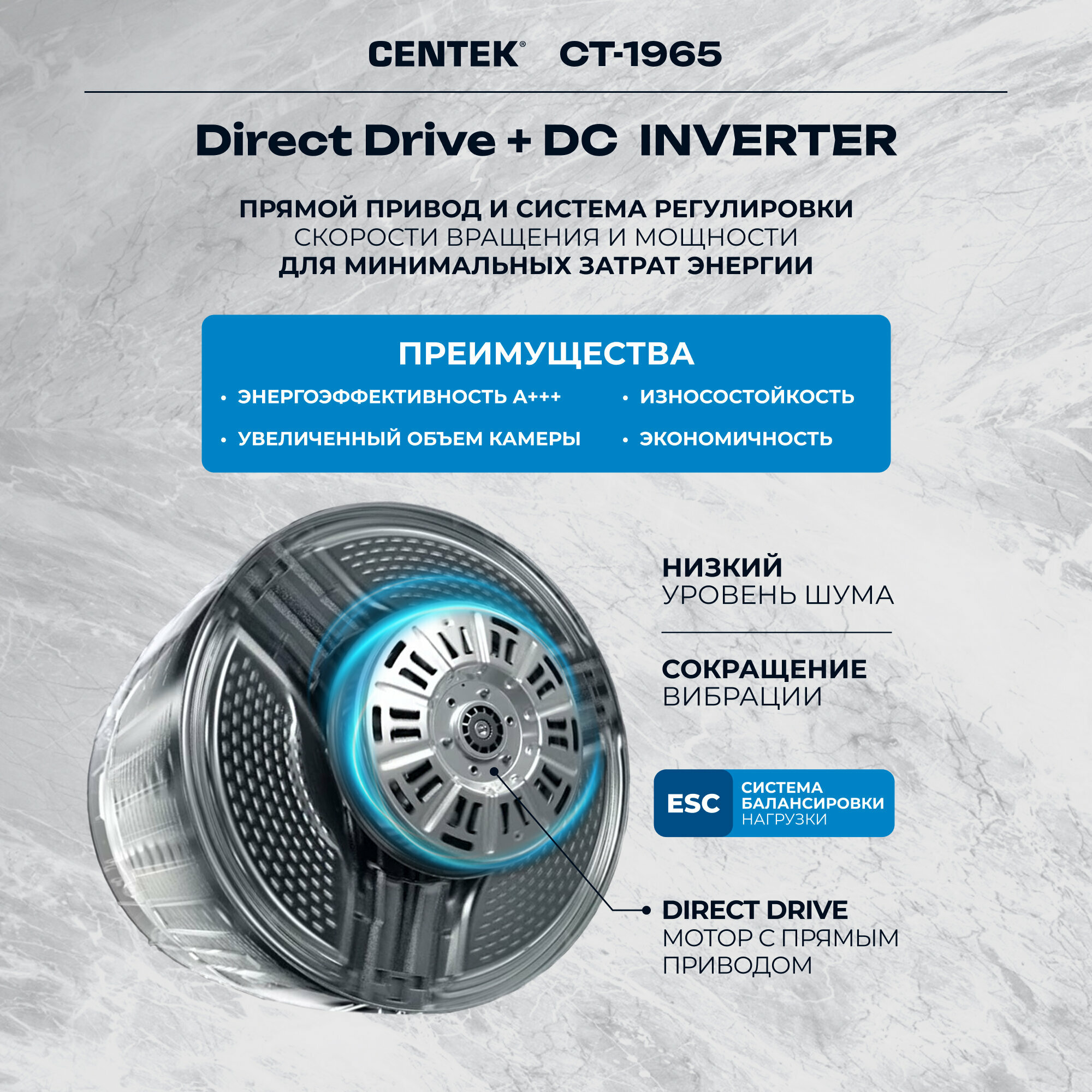 Стиральная машина CENTEK CT-1965/ серый/ 10 кг/ прямой привод/ сушка 6 кг информация: