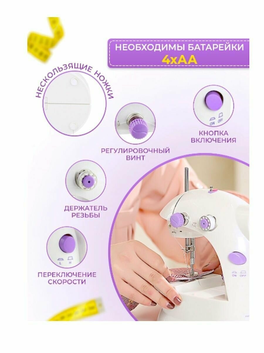 Отзывы на Портативная швейная машинка бело-сиреневая с педалью, швейная мини- машина с 2 скоростями, машинка для шитья
