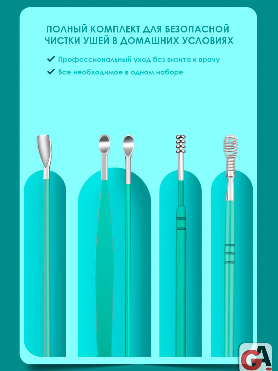 Косметический набор для чистки ушей в кожаном футляре 6в1 информация: