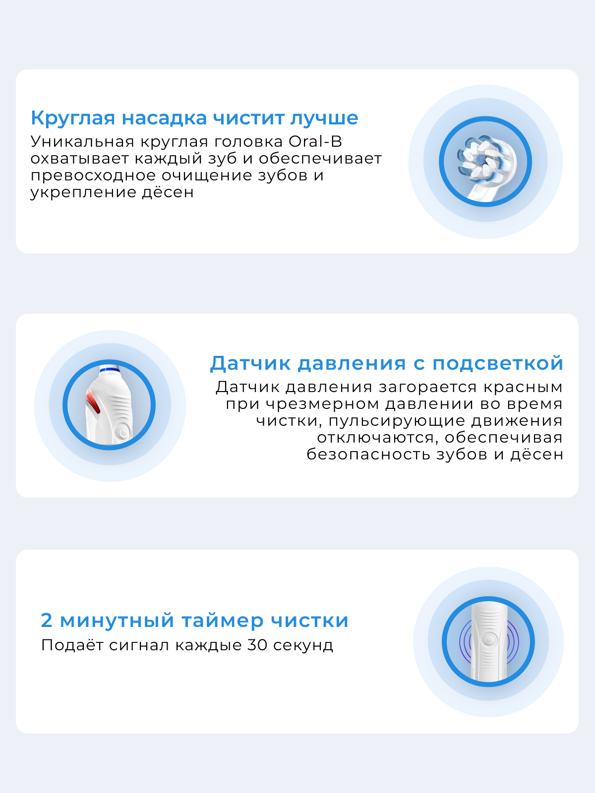 | Дополнительная информация | связь щетки через интерфейс Bluetooth с мобильным приложением Oral-B App; подходит для детей с 3-х лет |