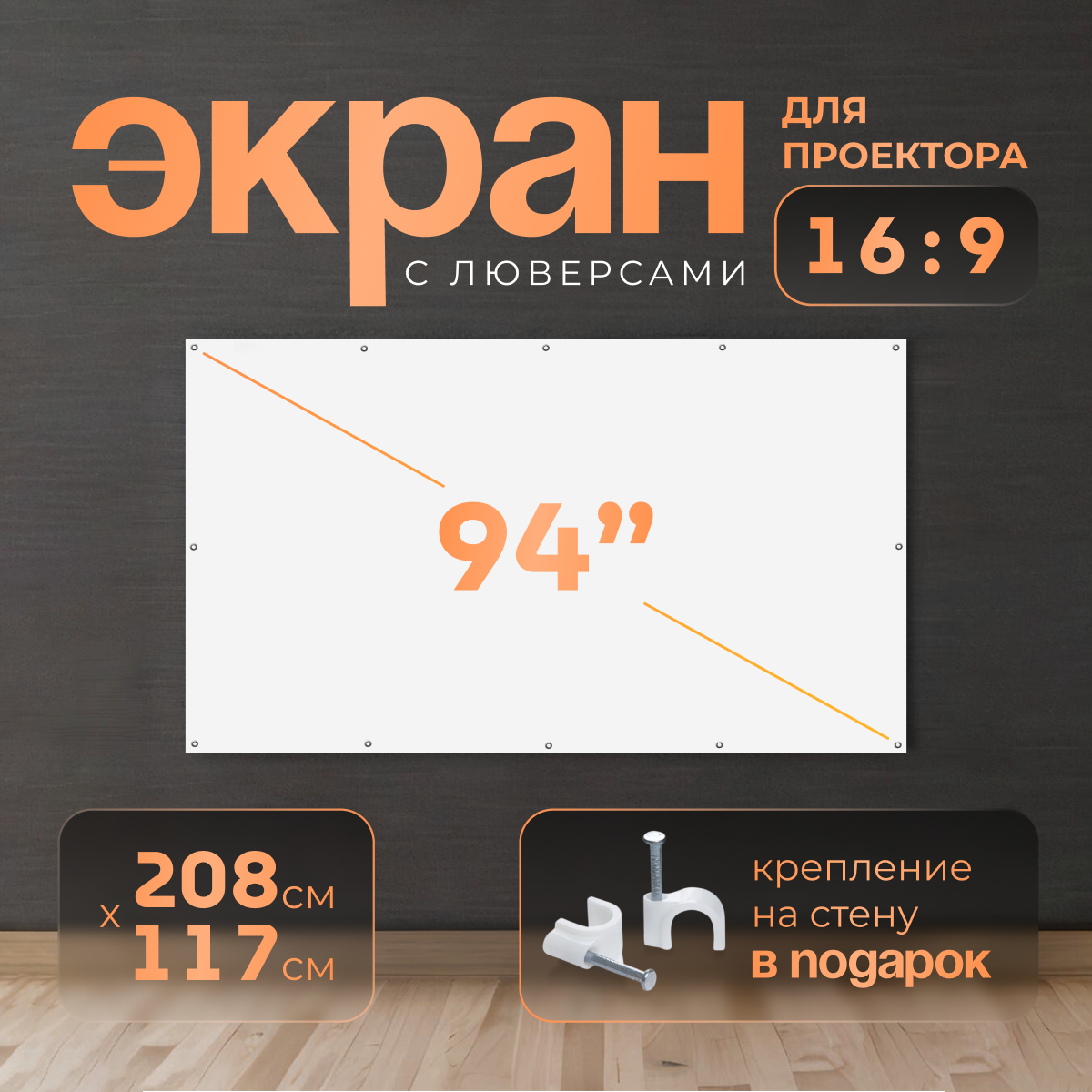 Экран для проектора ПВХ 94" с люверсами 16:9 Портативный отражающий проекционный экран Складной белый информация: