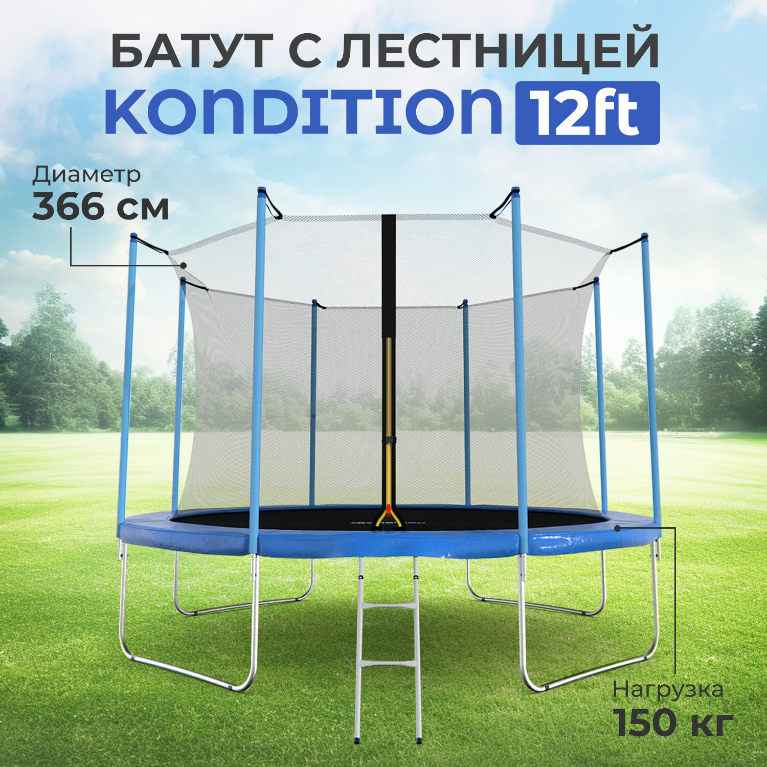Батут каркасный с сеткой DFC Kondition 12 ft с лестницей информация: