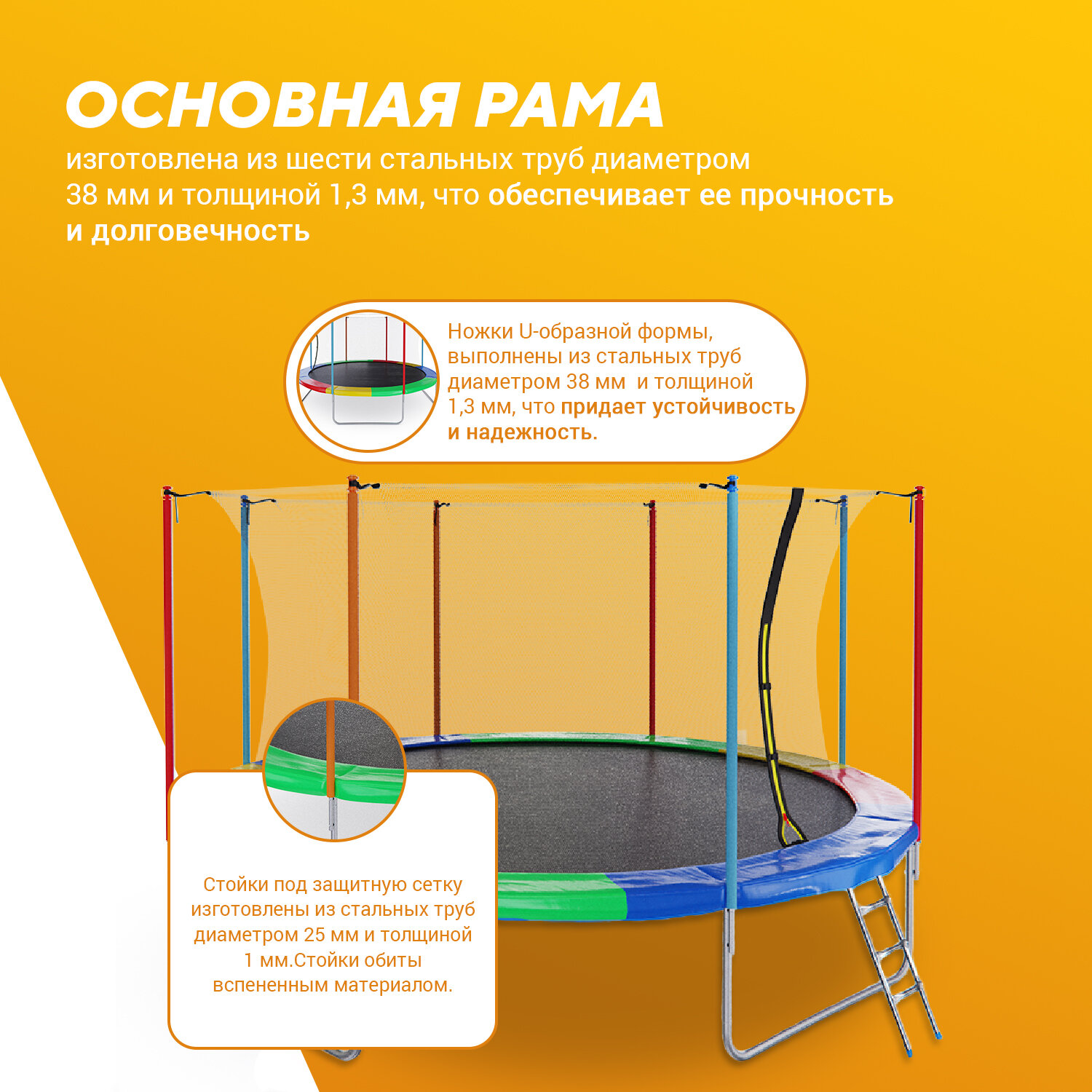 Каркасный батут DFC Jump Kids 55 (пружины амортизирующий трос) 137х137х165 см желтый/синий 8 886 ₽