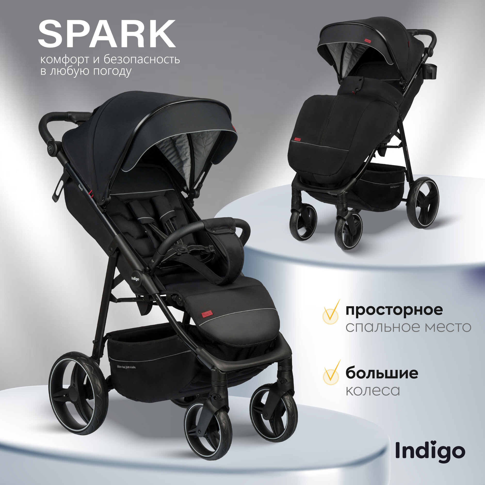10 цен на Коляска прогулочная Indigo Spark всесезонная, черный