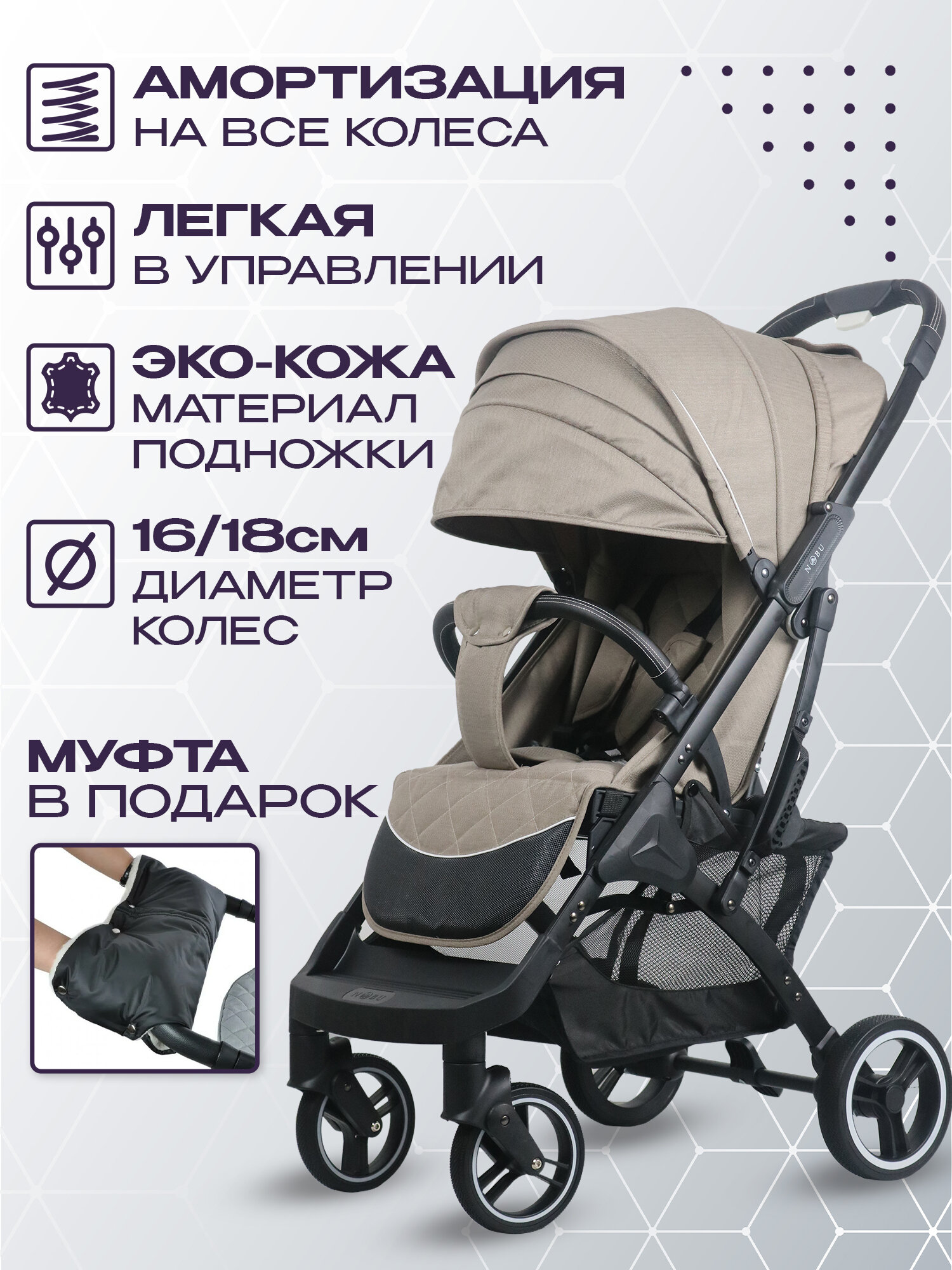 Прогулочная коляска Nobumi Sigma, Бежевая, всесезонная информация: