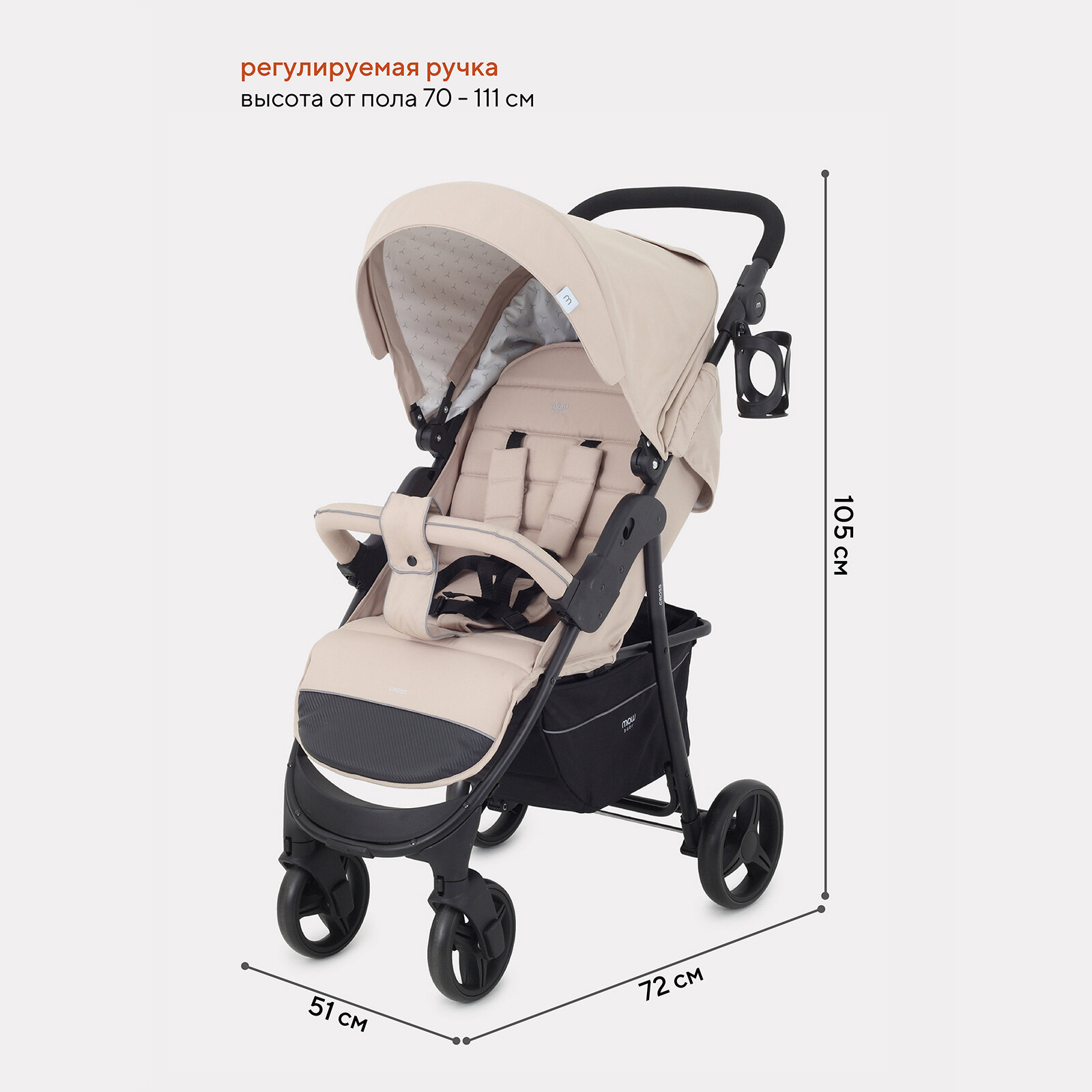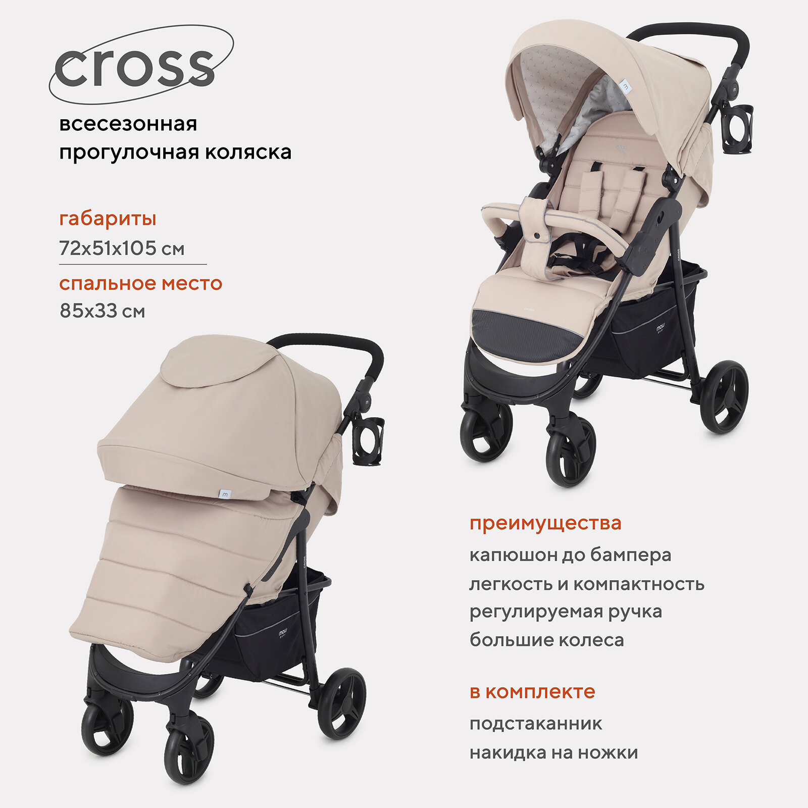 Коляска прогулочная всесезонная MOWBaby "CROSS" RA080 Beige 2024 информация: