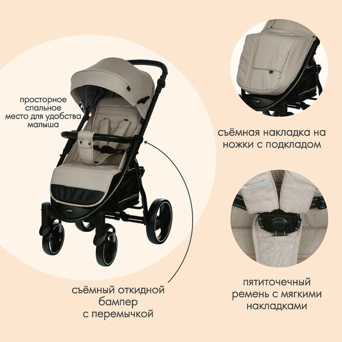 10 цен на Коляска прогул. MAXIMA (2кол.(20см)2кол.(30см), съемн.бамп.) (INDIGO), бежевый
