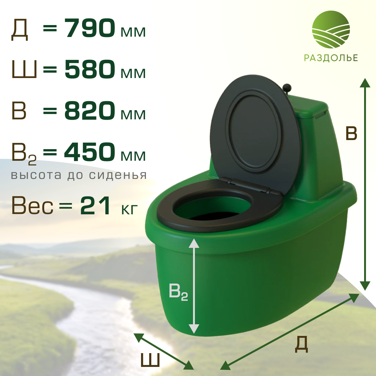 Туалет торфяной Раздолье зелёный информация: