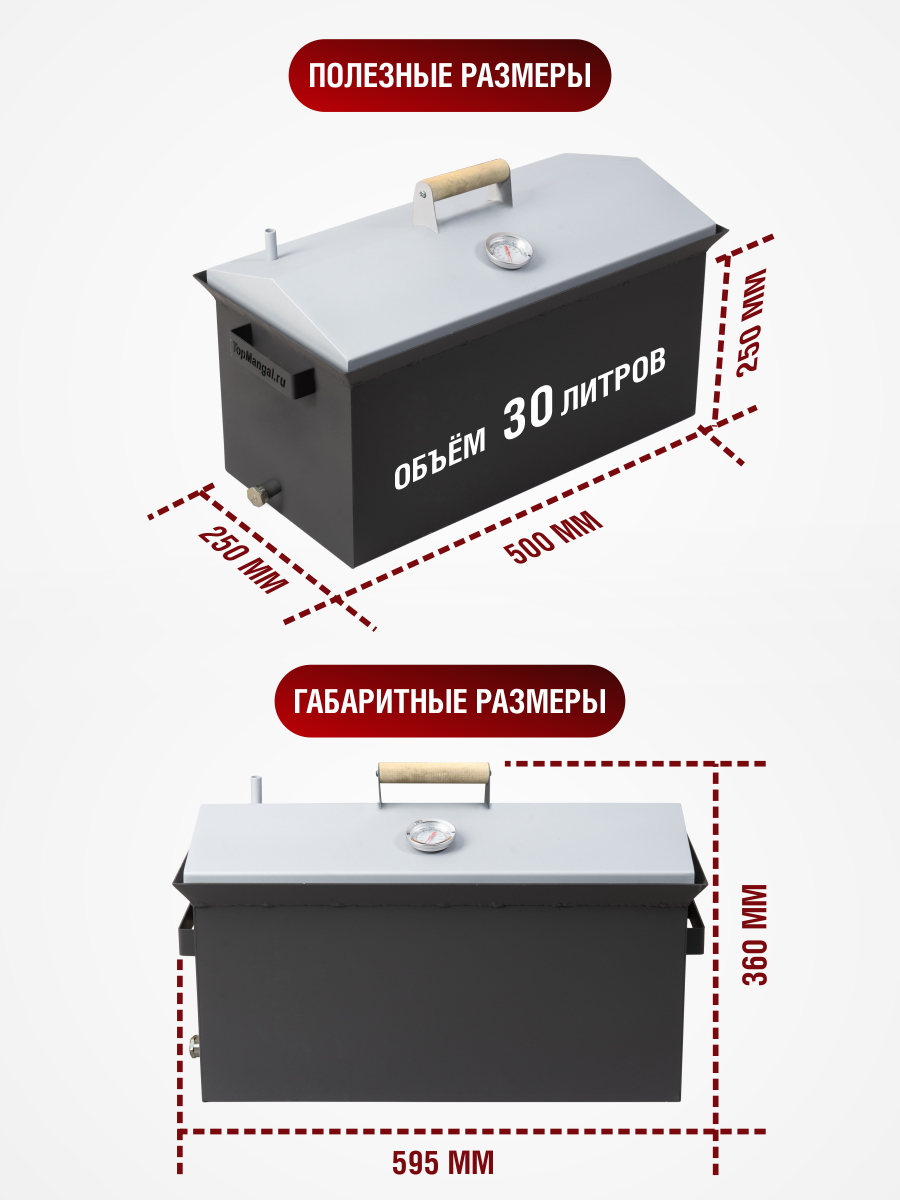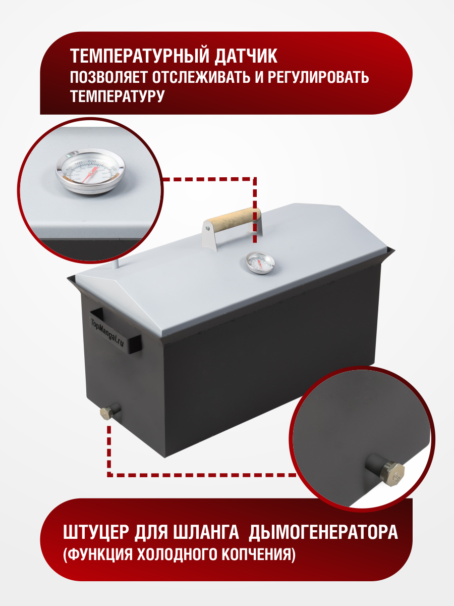 Коптильня горячего и холодного копчения TOPMANGAL с гидрозатвором с датчиком температуры 3 мм (500*250*300) информация: