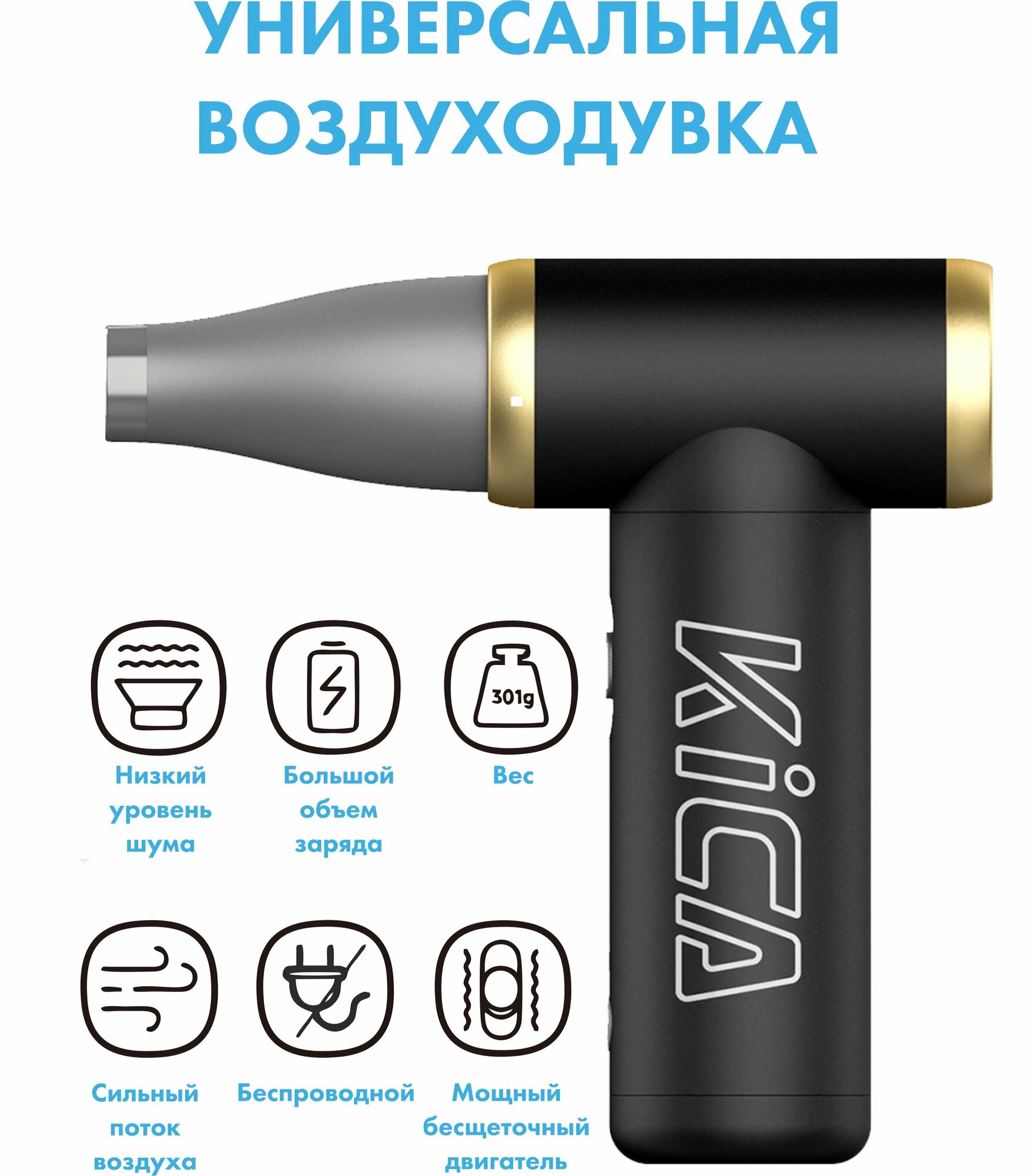 Беспроводная аккумуляторная воздуходувка для ПК, автомобиля, компьютера KICA Jet Fan 2 с насадками 5 800 ₽