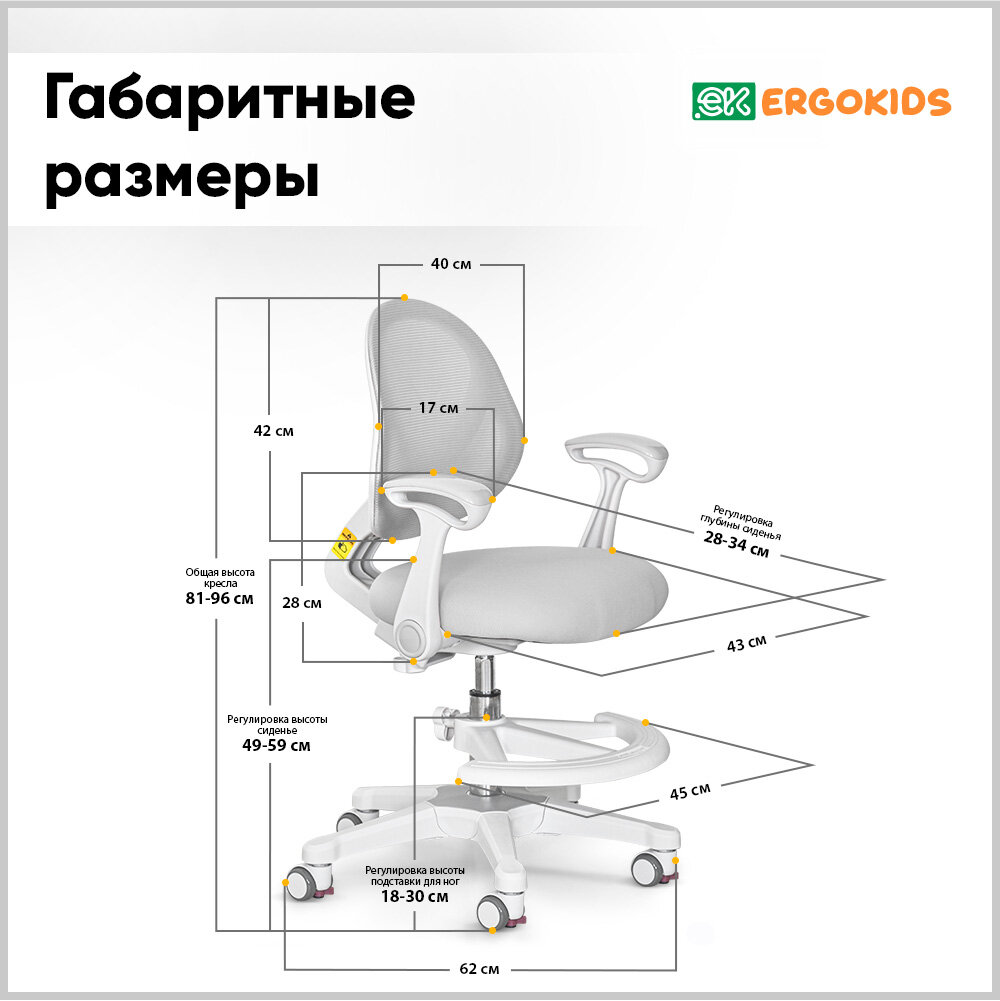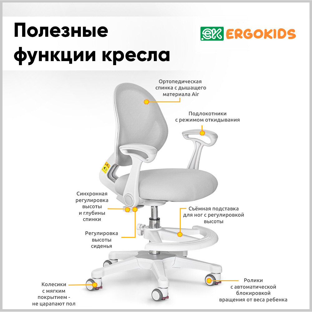 Растущее детское кресло для дома Mio Air G (арт. Y-400 G (arm)) для обычных и растущих парт + подлокотники + подставка для ног + чехол на сиденье информация: