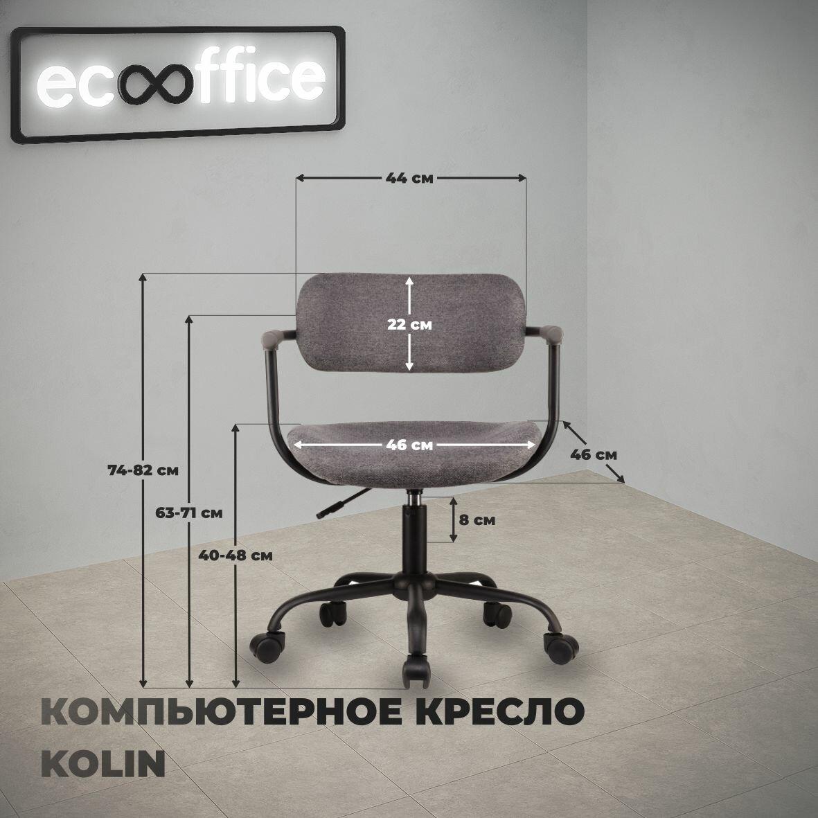 Кресло компьютерное офисное Eco-Office PATRICK W-237, стул крутящийся на колесиках, Светло-серая ткань/Черный каркас 11 200 ₽