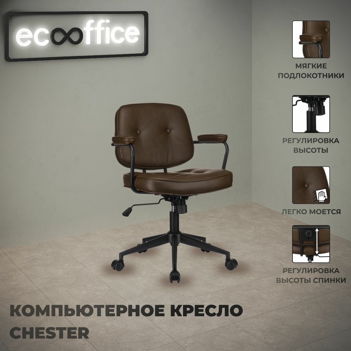 Компьютерное кресло с механизмом качания RV Design CHESTER W-221 коричневая экокожа информация: