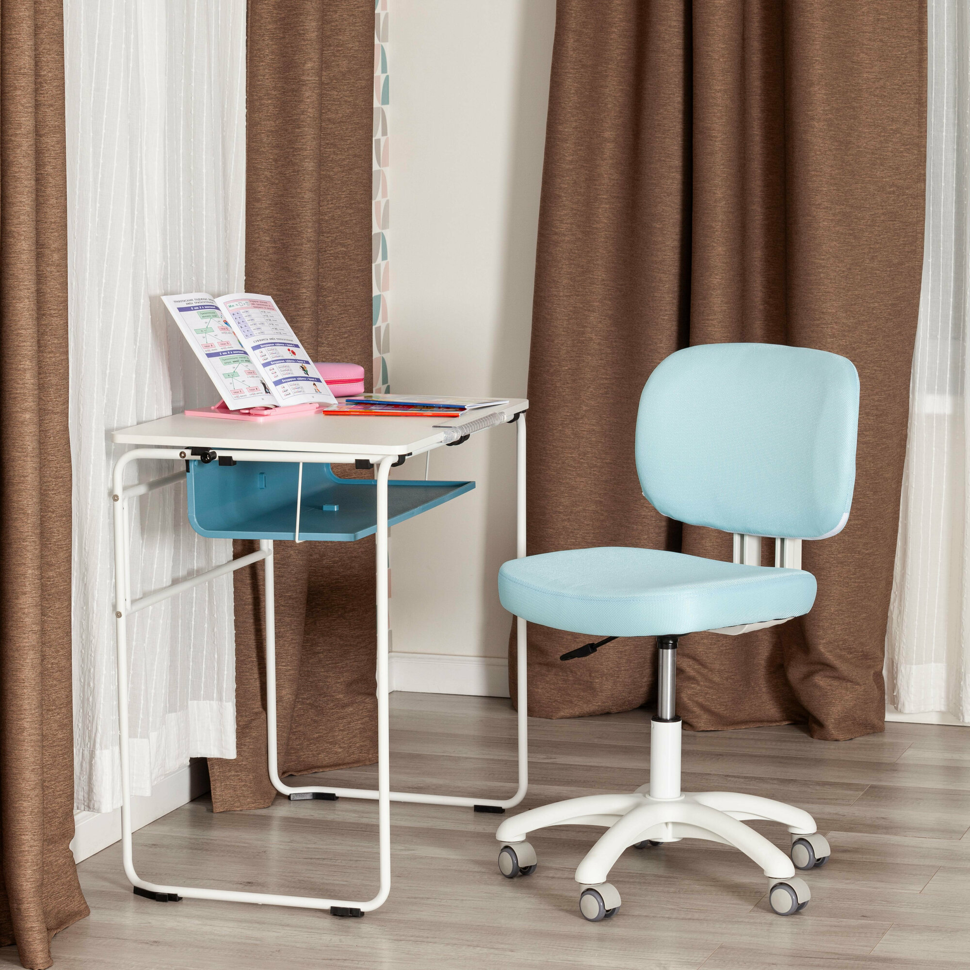 Кресло компьютерное TetChair Junior на колесиках для школьника, голубой, белый информация: