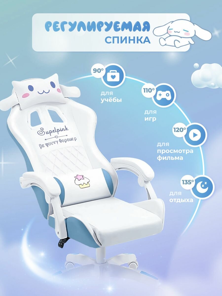 10 цен на Кресло компьютерное игровое геймерское Classmark FT-1502 офисное с подушками для спины и шеи на колесиках, бело-синее