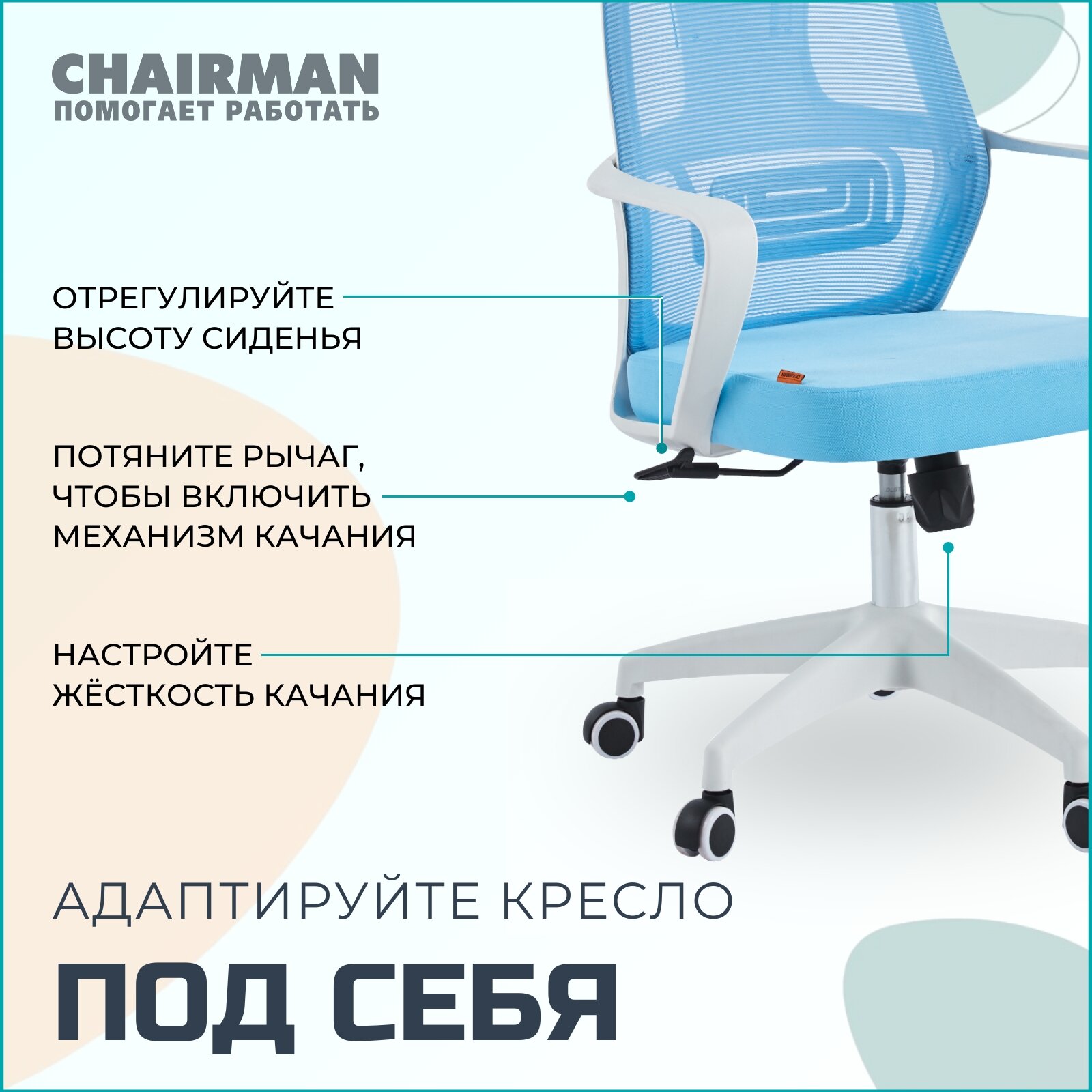 Отзывы на Офисное кресло, кресло руководителя CHAIRMAN CH636, ткань/сетка, голубой, белый пластик