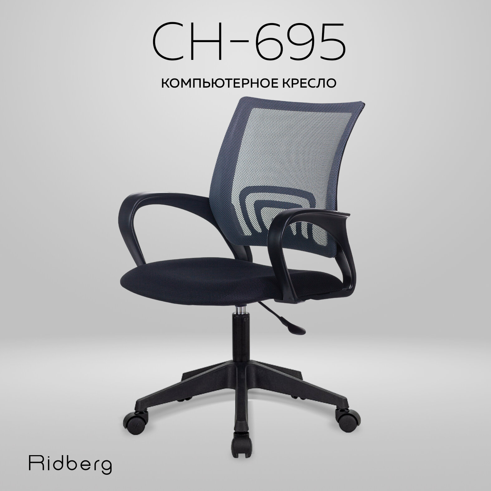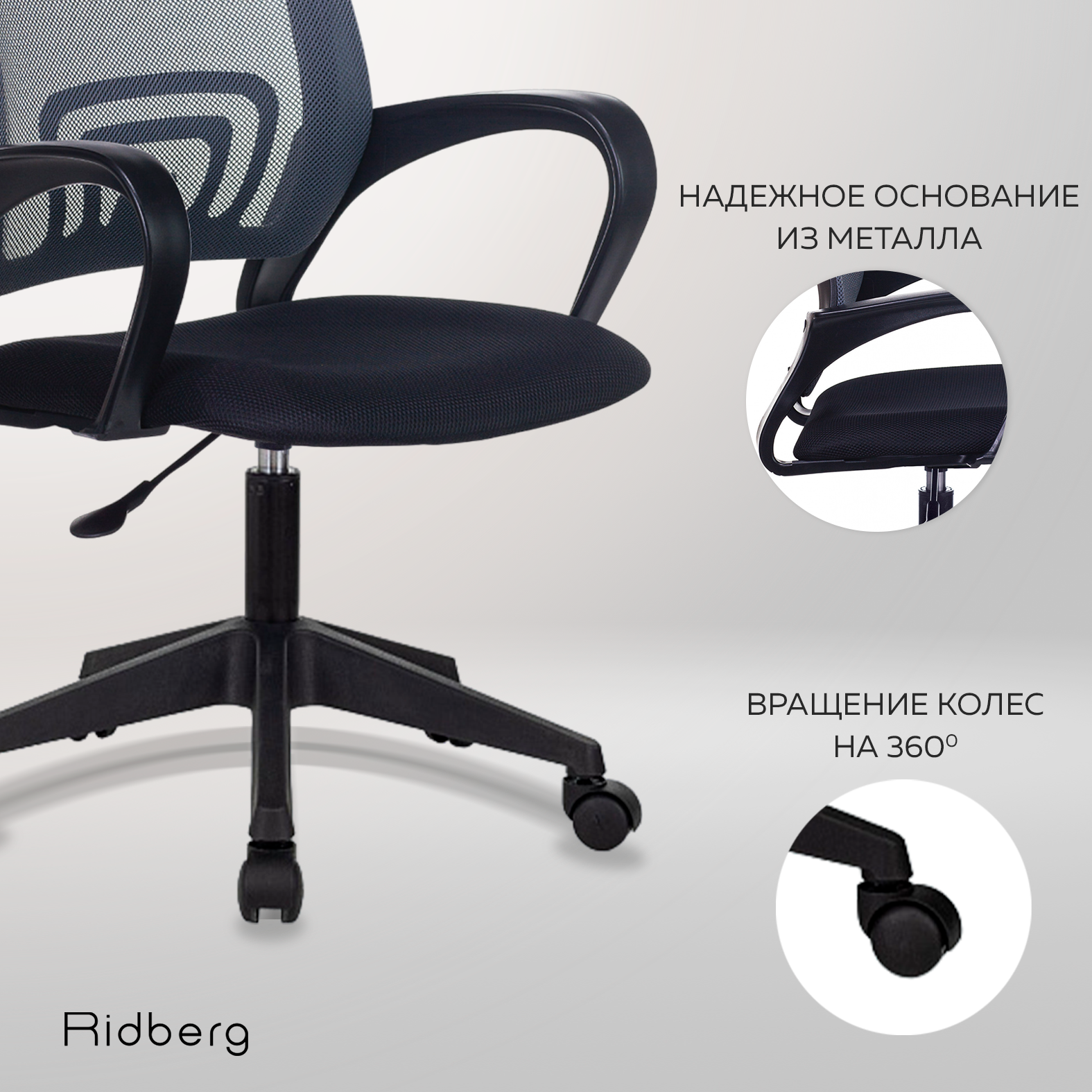 Компьютерное офисное кресло RIDBERG CH-695 черно-серый / Детское кресло с подлокотниками на колесах / Стул компьютерный для руководителя информация: