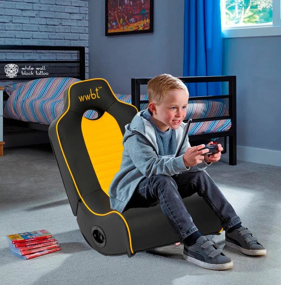 10 цен на Кресло игровое напольное, встроенные динамики 2.1 для видеоигр черно/желтый