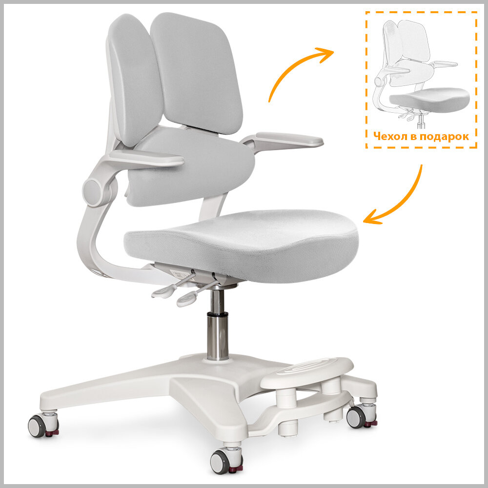 Растущее детское кресло для школьника ErgoKids Trinity Grey (арт.Y-617 G) для обычных и растущих парт с подлокотниками, подставкой для ног и чехлом информация: