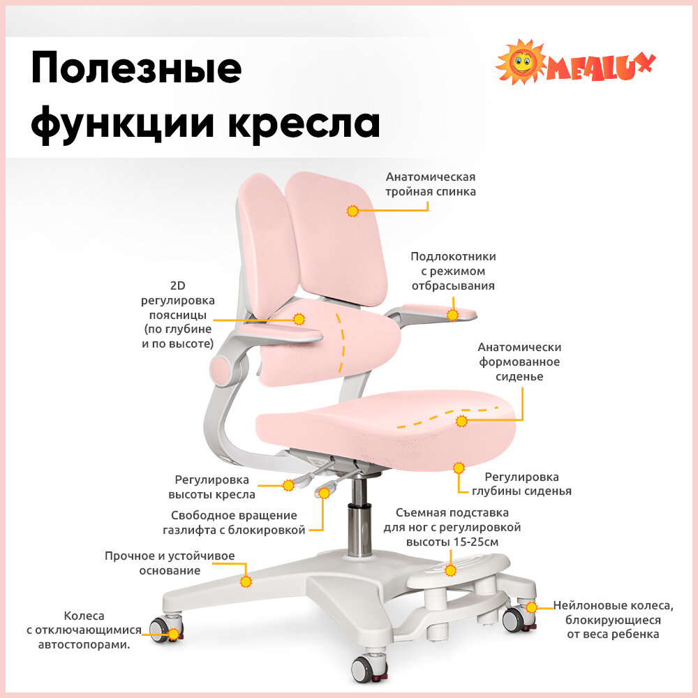 Растущее детское кресло для школьника ErgoKids Trinity Pink (арт.Y-617 KP) для обычных и растущих парт с подлокотниками, подставкой для ног и чехлом информация:
