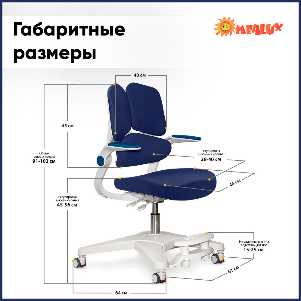 Растущее детское кресло для школьника ErgoKids Trinity Dark Blue (арт.Y-617 DB) для обычных и растущих парт с подлокотниками, подставкой для ног и чехлом информация: