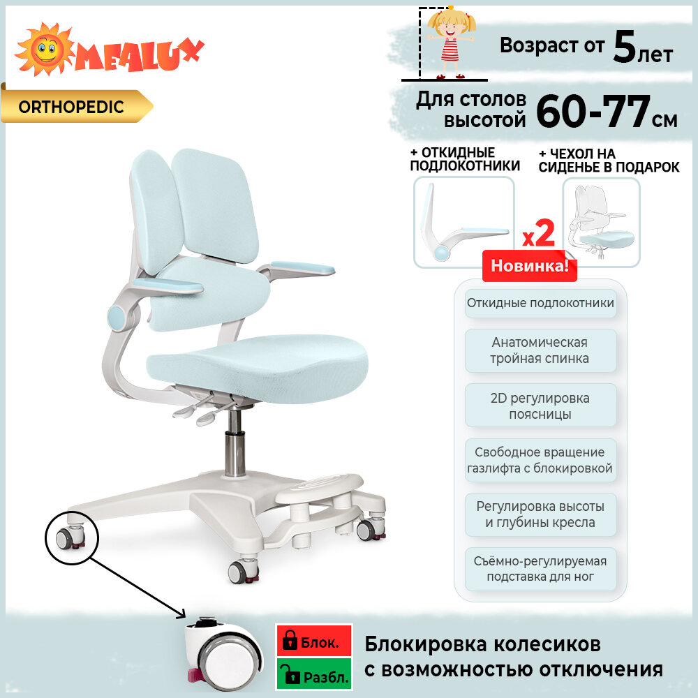 Растущее детское кресло для школьника ErgoKids Trinity Blue (арт.Y-617 KBL) для обычных и растущих парт с подлокотниками, подставкой для ног и чехлом на сиденье информация: