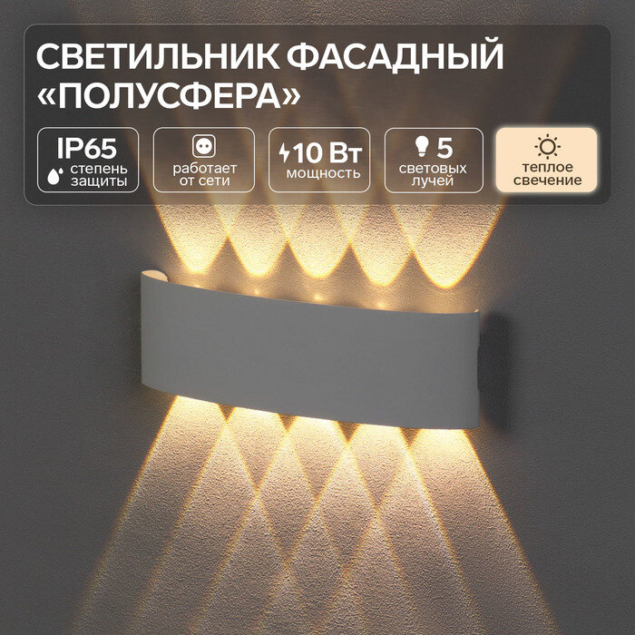 10 цен на Светильник фасадный "Полусфера", FSD-099, 10 Вт, 3000К, 5 лучей, IP65, 220 В, металл, белый 100854