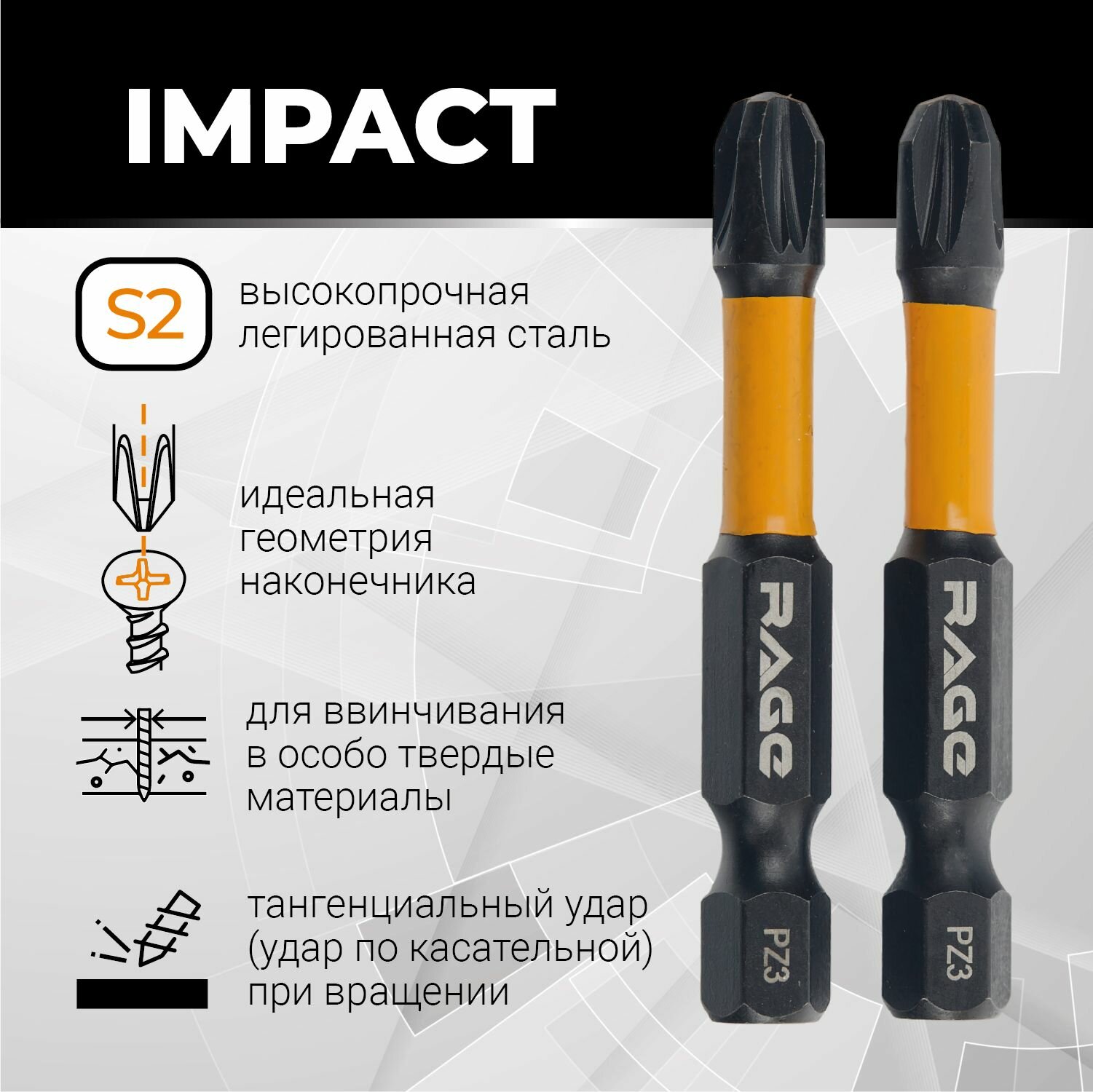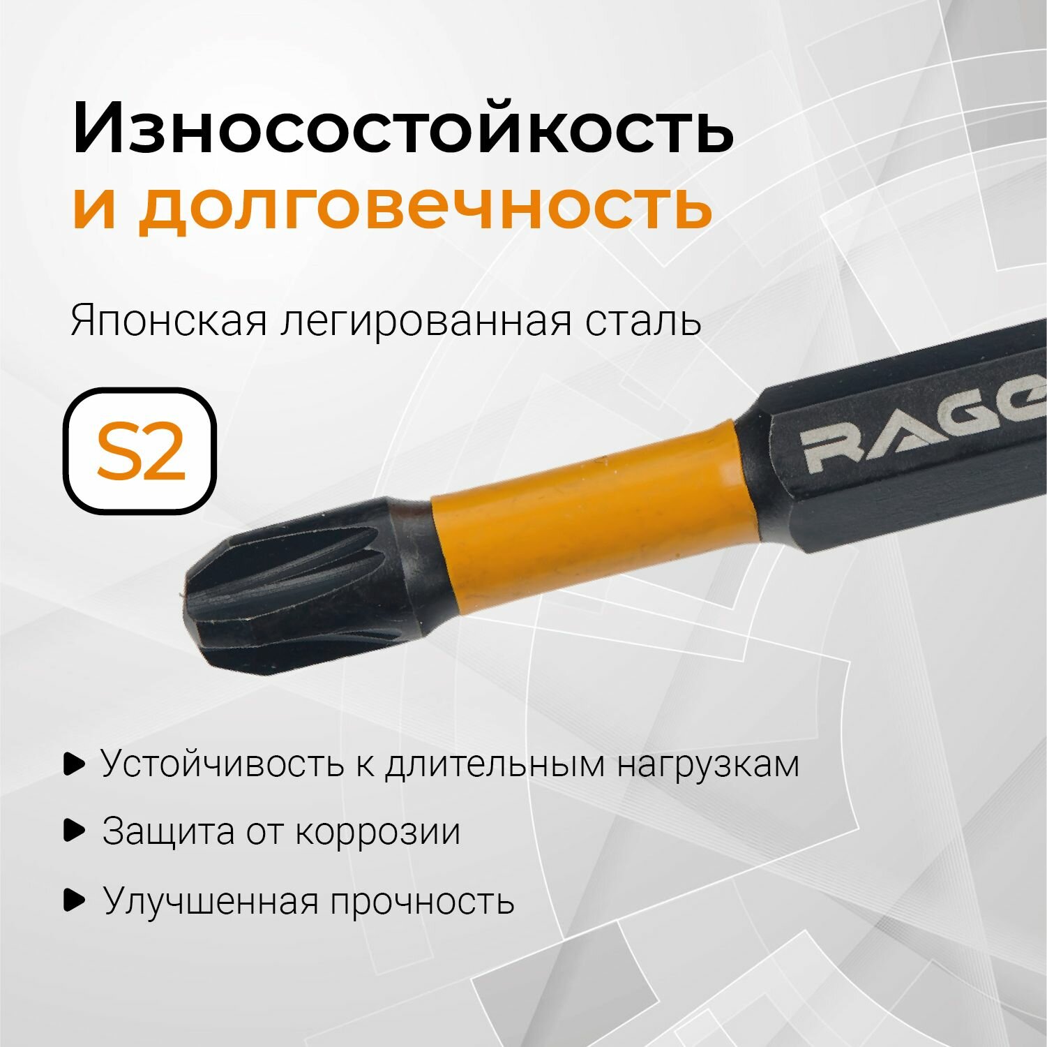 Биты торсионные 2 шт S2 PZ3 x 50 мм RAGE by VIRA информация: