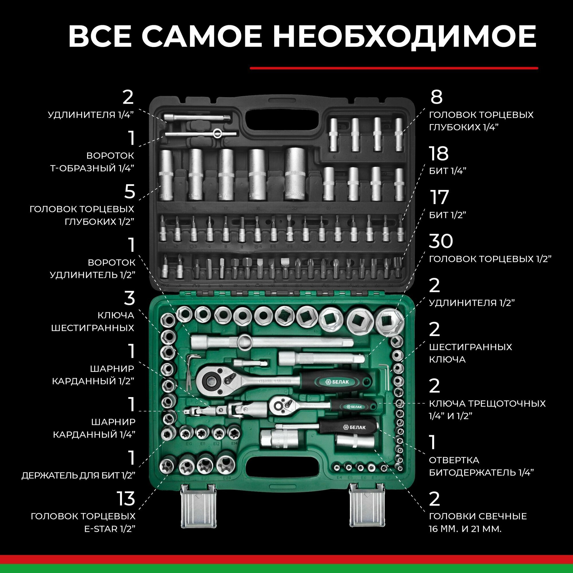 Набор инструментов для автомобиля и дома в кейсе 110 предметов "Стандарт" БАК.07010 БелАК информация: