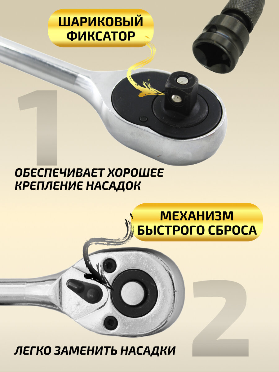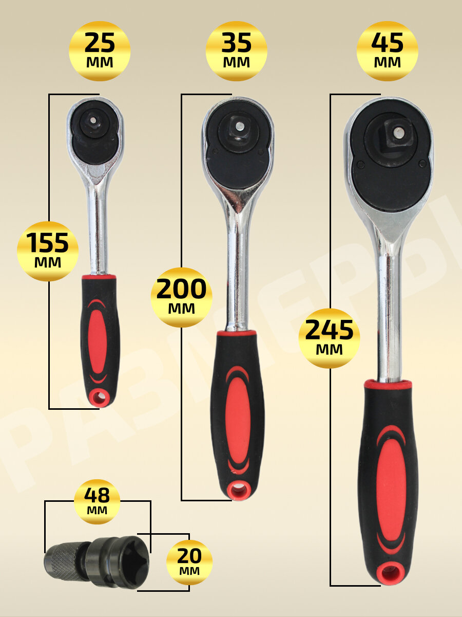 Отзывы на Набор трещоточных реверсивных ключей 1/4", 3/8", 1/2" с двухкомпонентными ручками