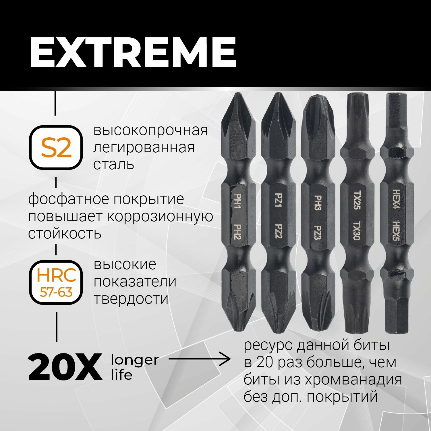 | Биты подробно | PH1xPH2, PZ1xPZ2, PH3хPZ3, T25xT30, Hex4xHex5 |