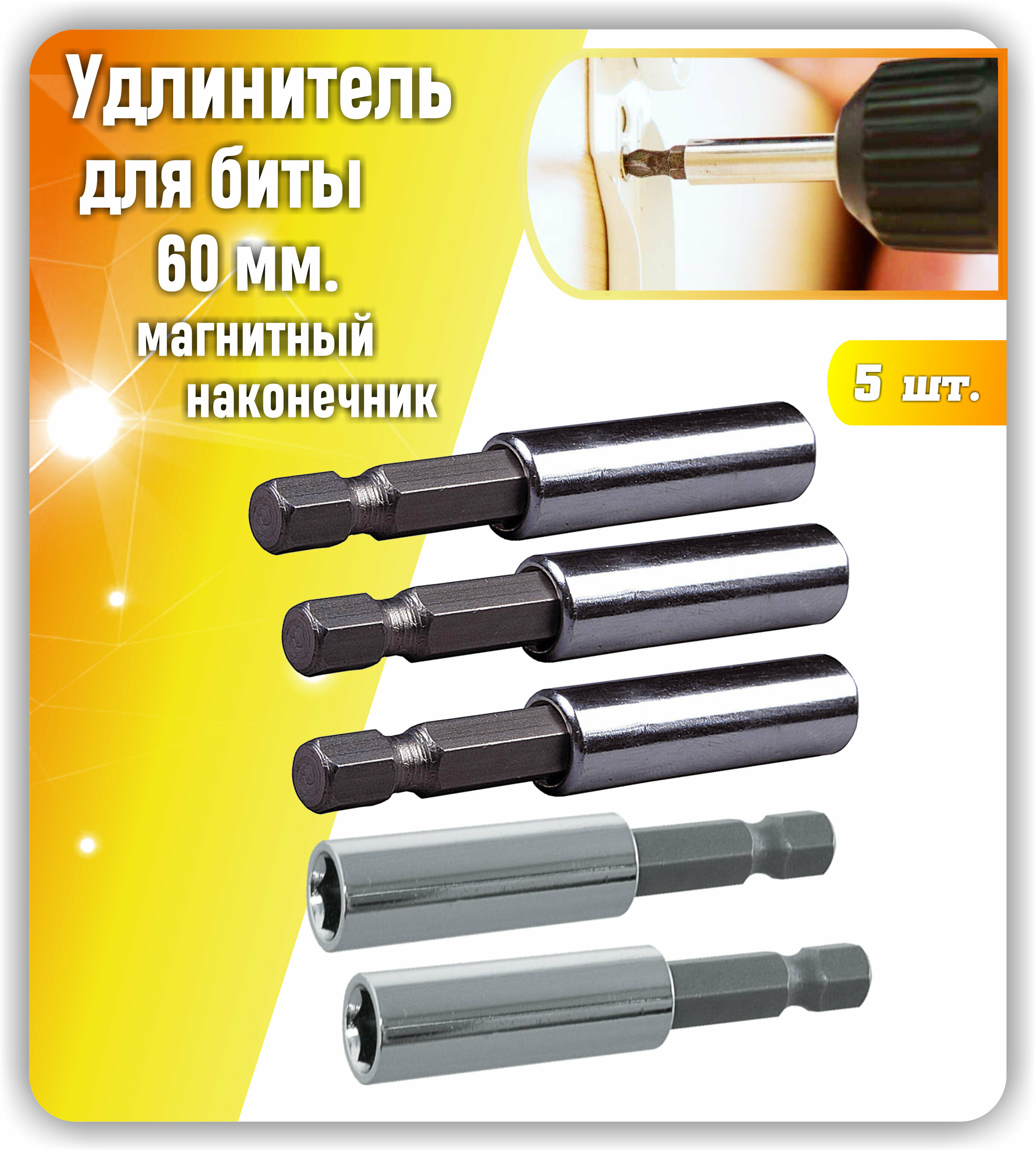 набор Удлинитель для биты установка в шуруповерт, длина 60 мм, магнитный наконечник 5шт. информация: