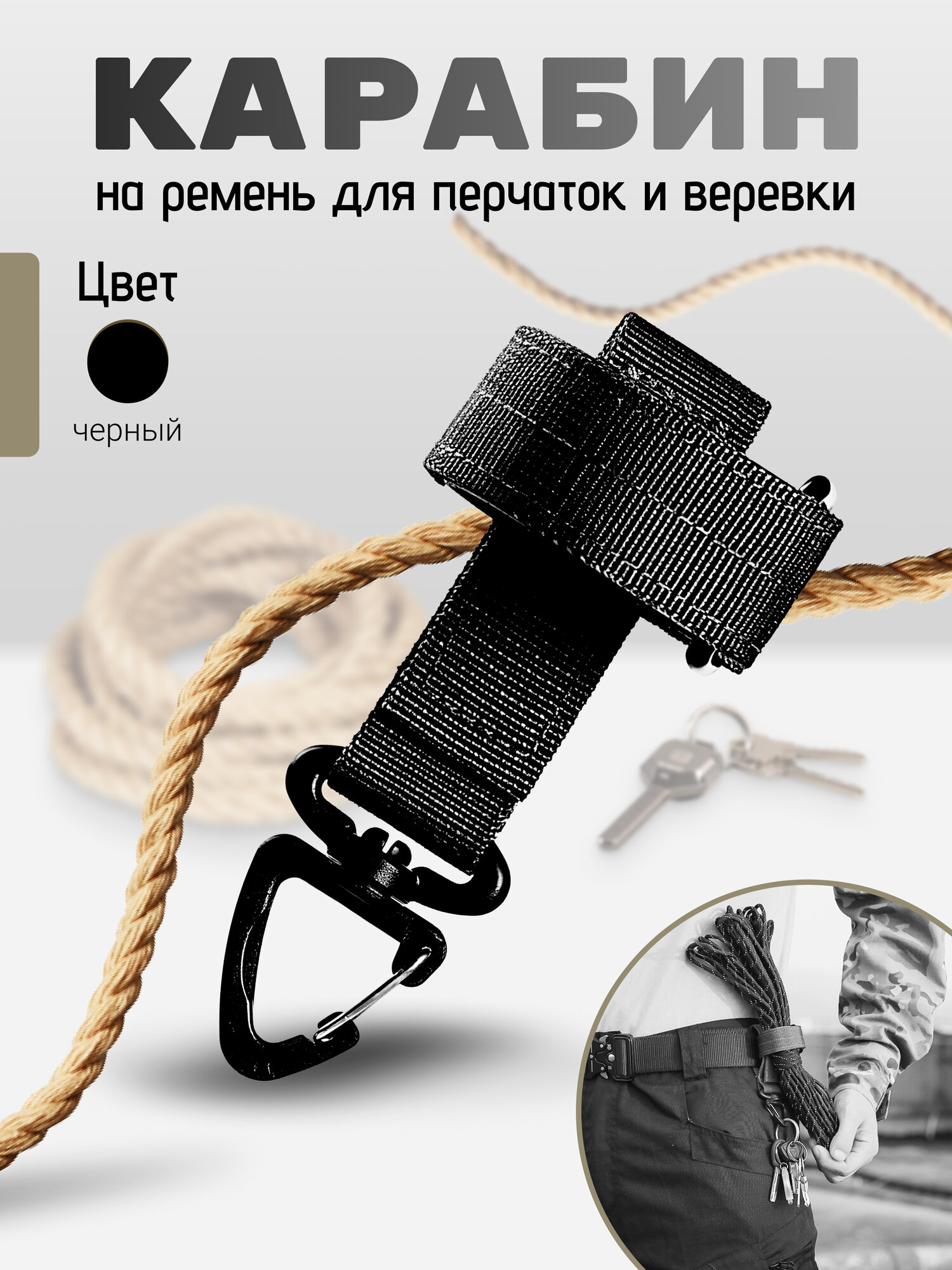 10 цен на Держатель для перчаток тактический с карабином, чёрный