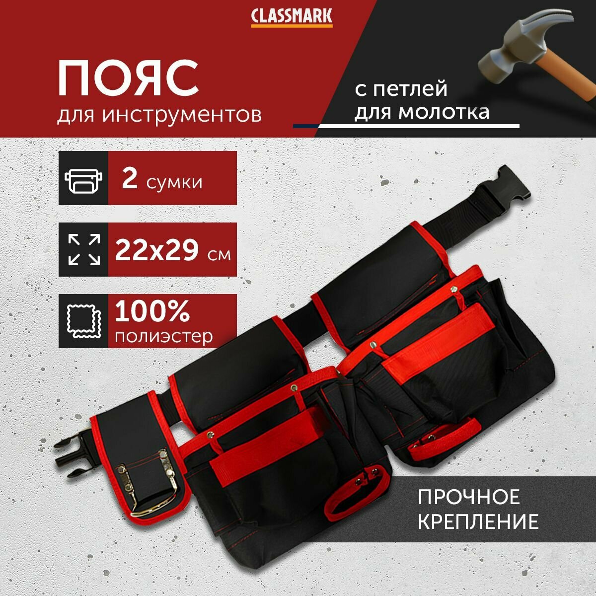 10 цен на Сумка для инструмента на пояс Classmark строительная и монтажная, поясная, 2 сумки и петля для молотка, с отделениями для хранения и переноски, цвет черный и красный