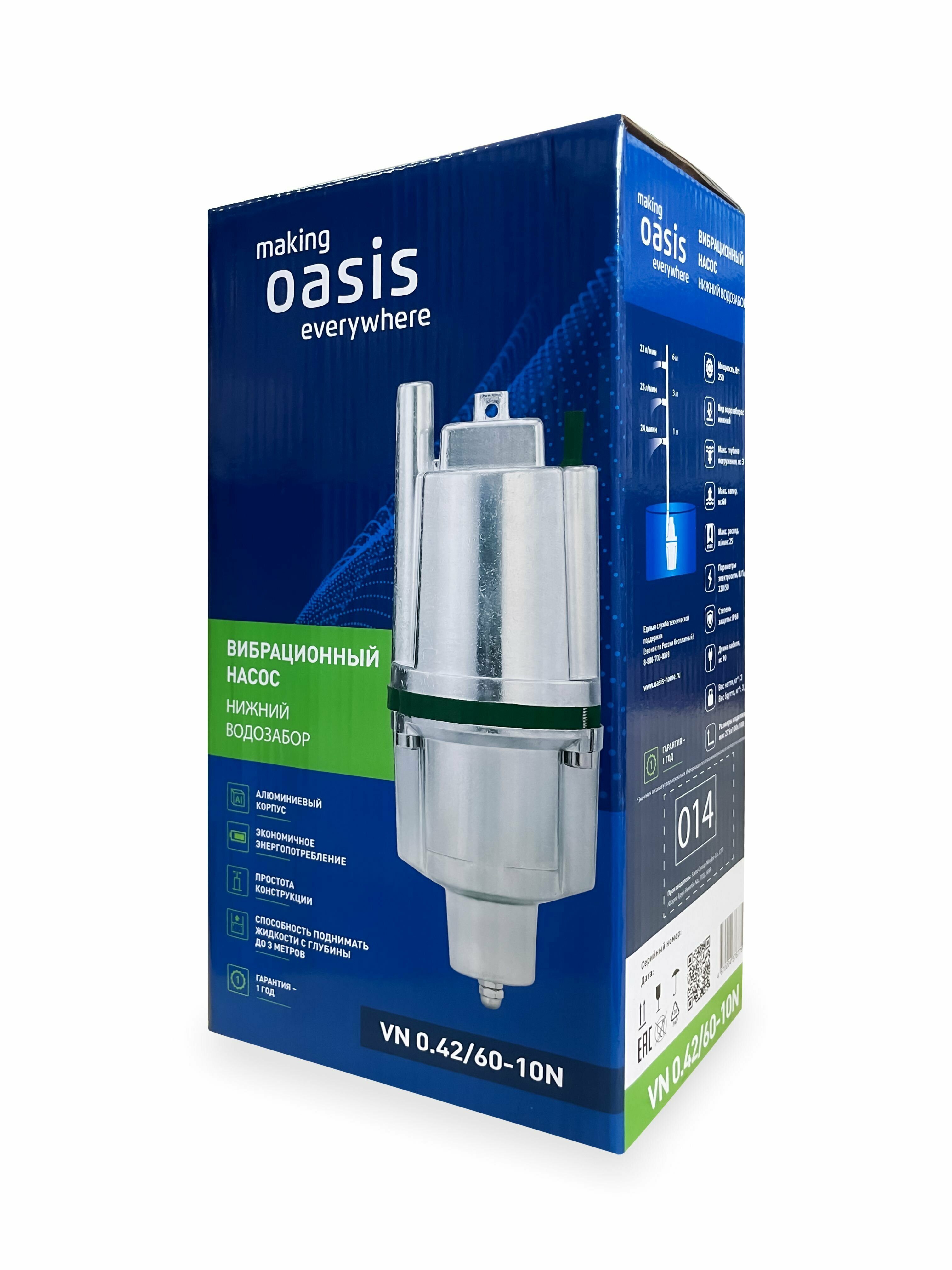 Насос для воды погружной вибрационный Oasis модель VN 0,42/60-10N, нижний забор информация: