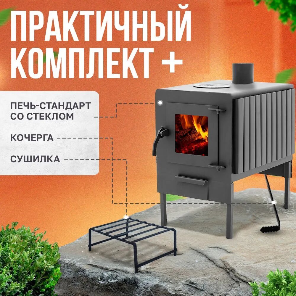 10 цен на Печь-буржуйка Теплосталь стандарт со стеклянной дверцей+кочерга стандарт+сушилка стандарт