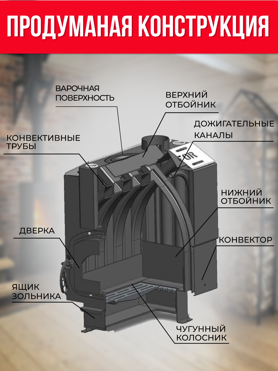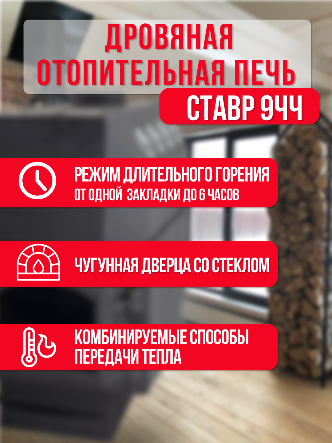 Отопительная печь Ставр 9ЧЧ с чугунной дверкой и конфоркой (до 150 м3) информация: