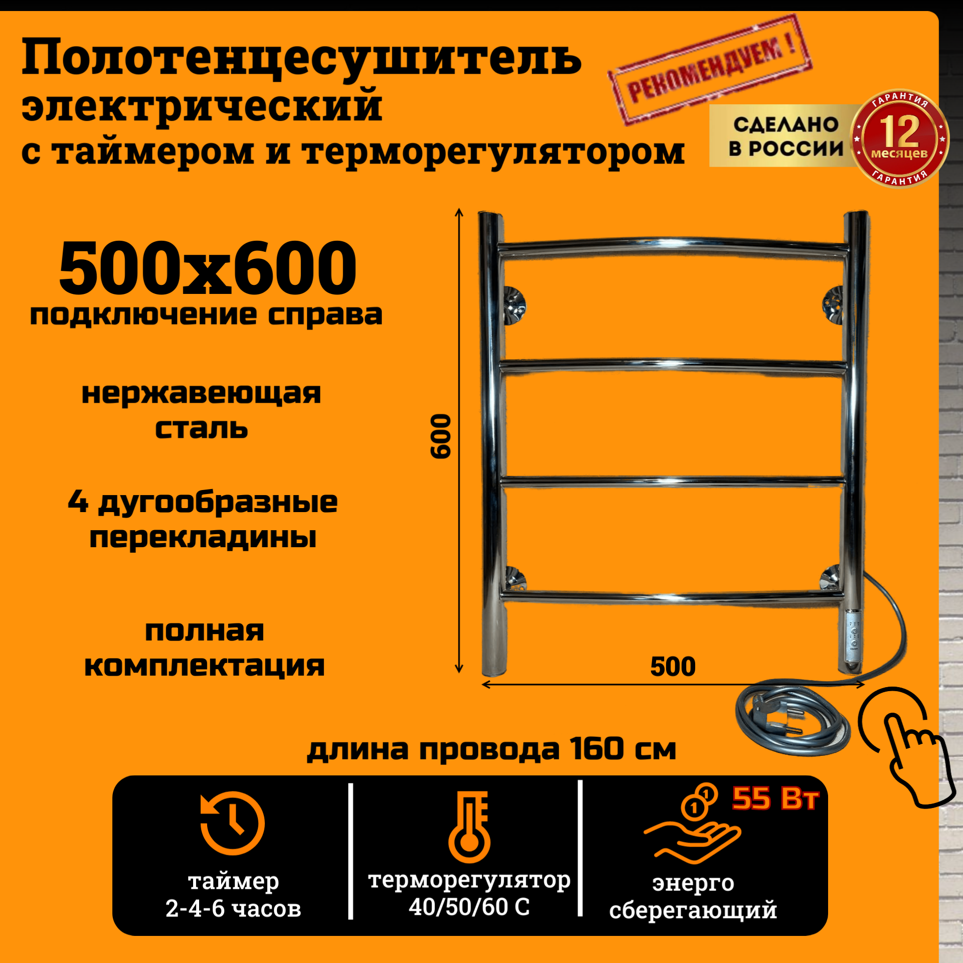 10 цен на Полотенцесушитель электрический РуДизайн Лесенка нерж. 500х600 таймер и подключение справа