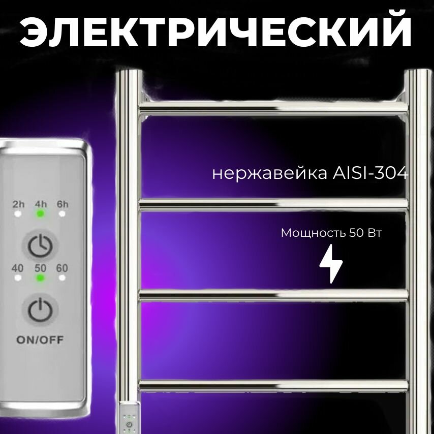 Электрический полотенцесушитель Акванерж прямая 50 Ватт, 60 х 40 см, левый информация: